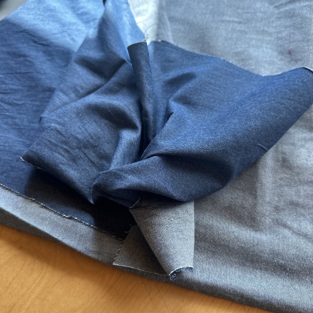 Někdy je příběh materiálů jednoduchý: Nevyužitá metráž od paní z Českého Brodu, která se šitím na zakázku živila, ale rozhodla se již nepokračovat a materiály nám odprodala k dalšímu využití.