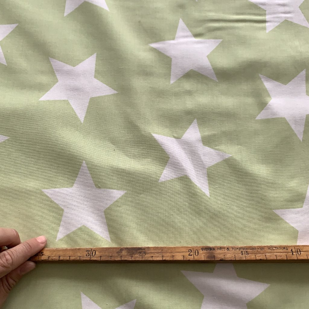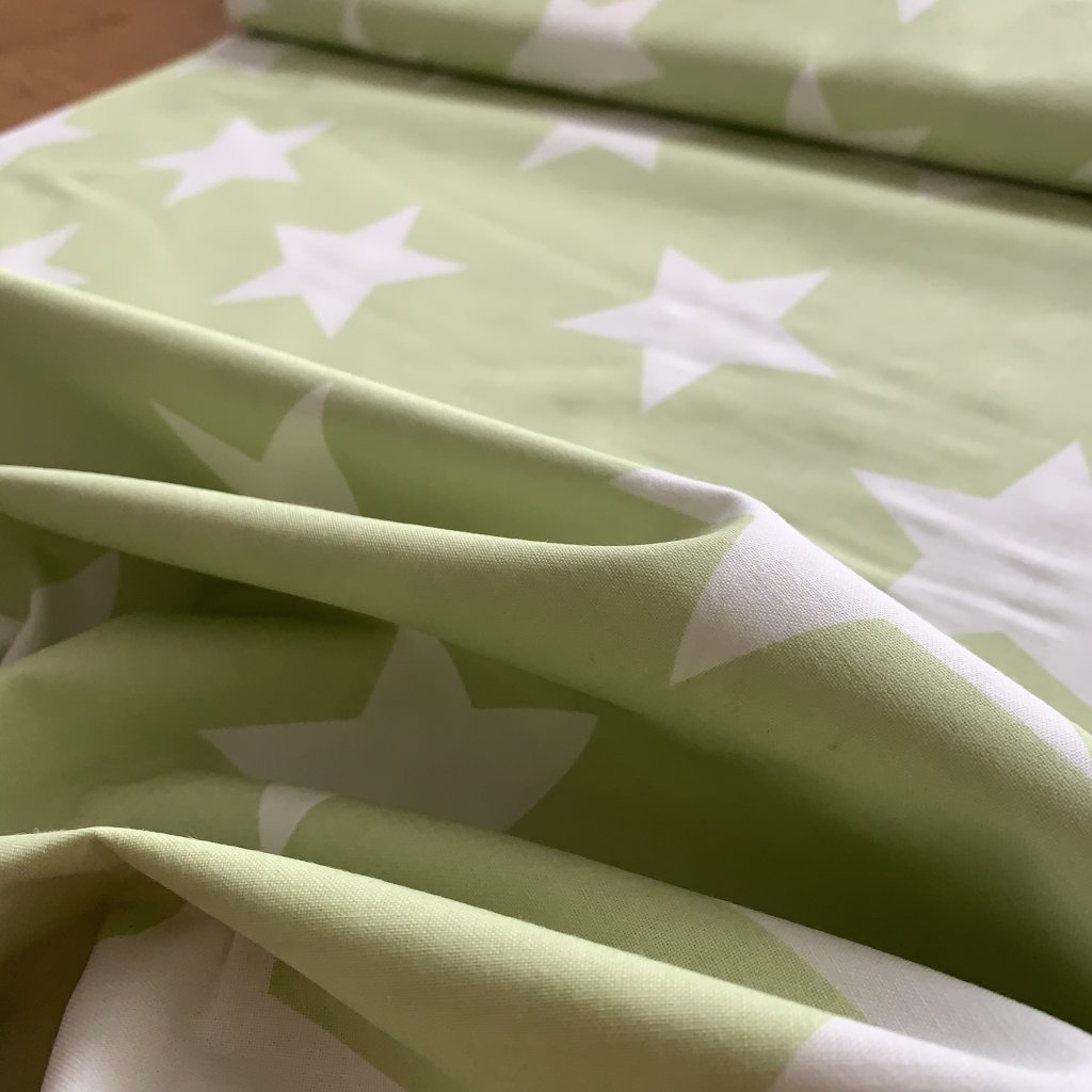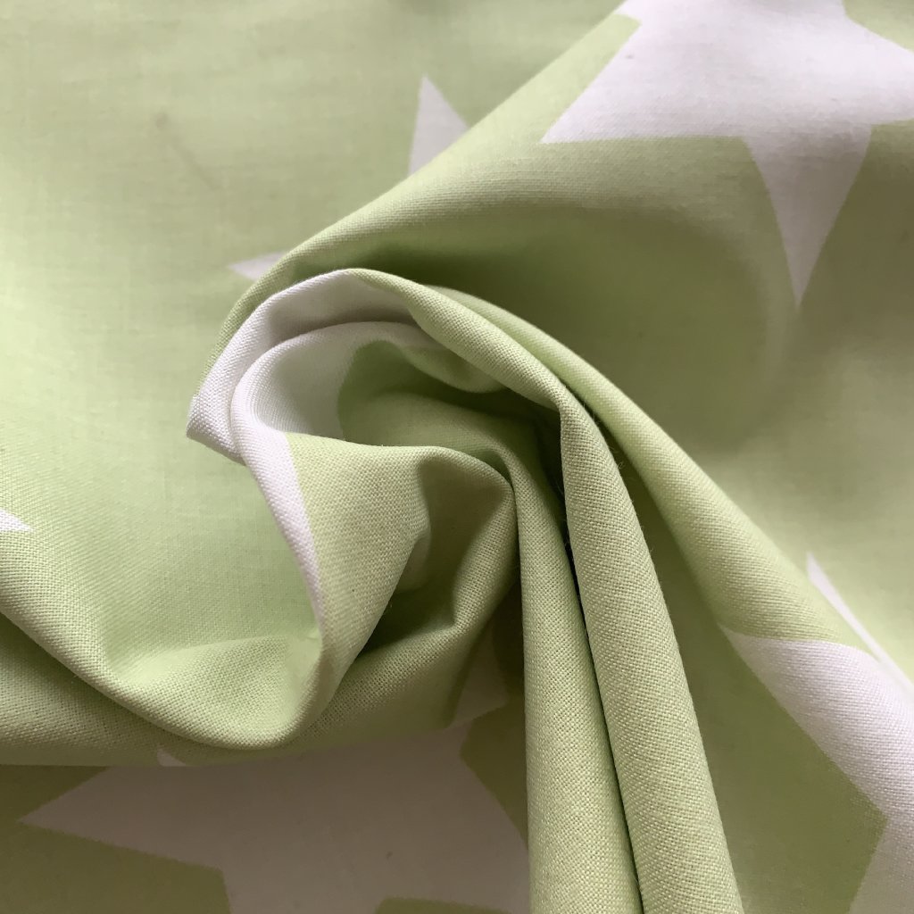 Bavlněné plátno bílé maxi hvězdy na světle zelené