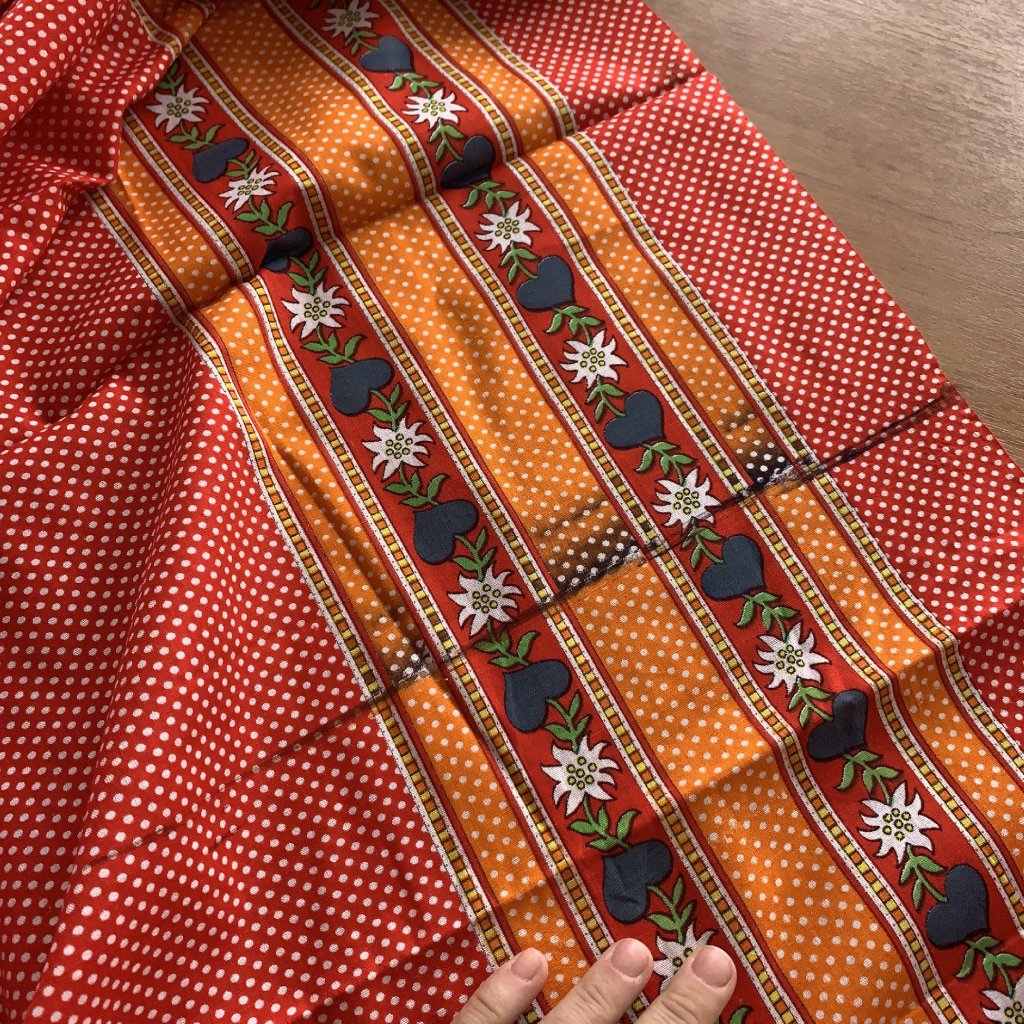 Bavlněné plátno panel bílo červený, puntíky,po celé delce, fleky viz poslední foto