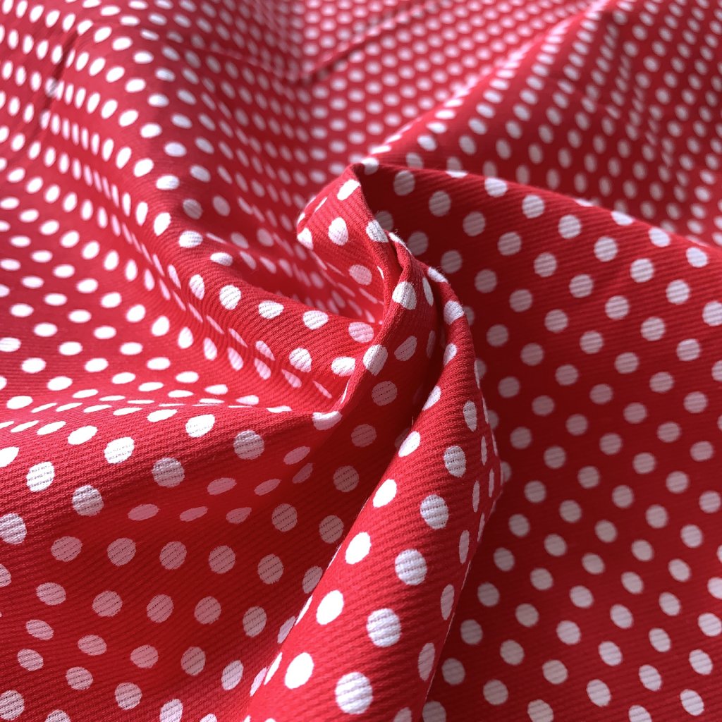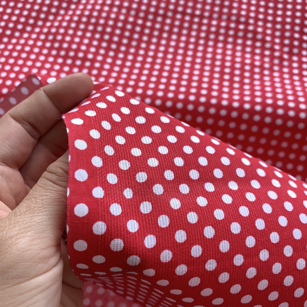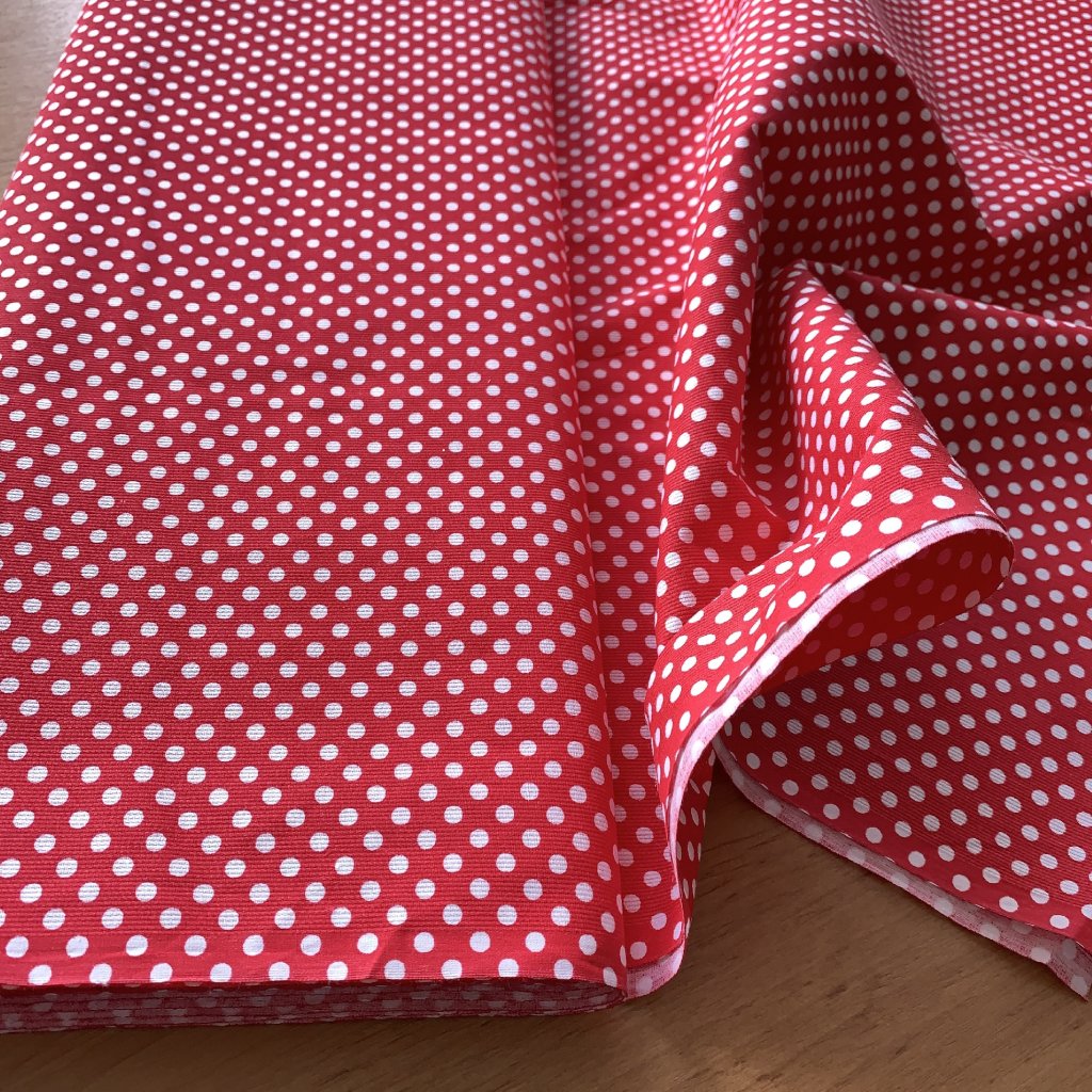 Bavlněné plátno s rypsovou strukturou - bílé puntíky na červené