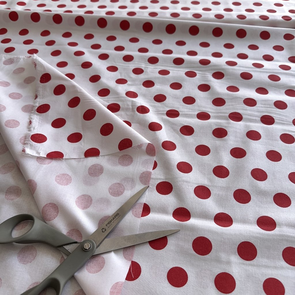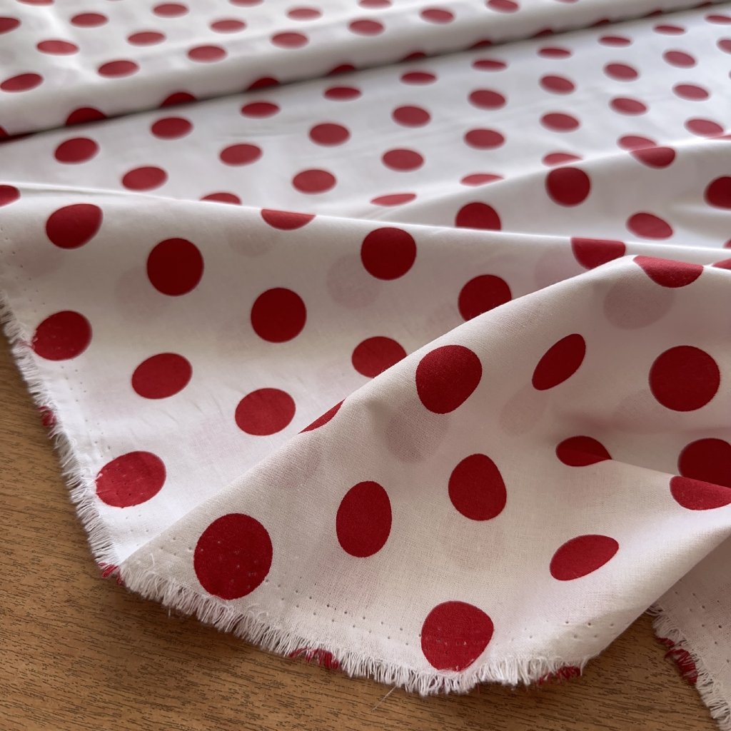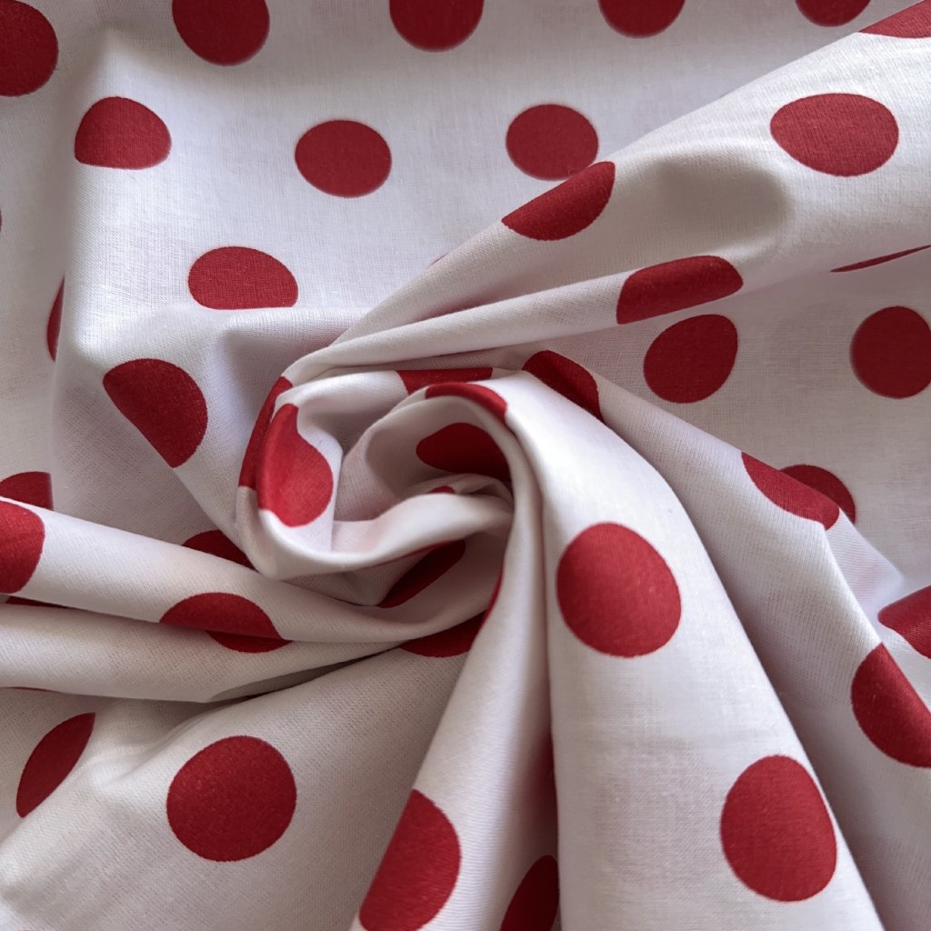 Bavlněné plátno, velké červené puntíky na bílé