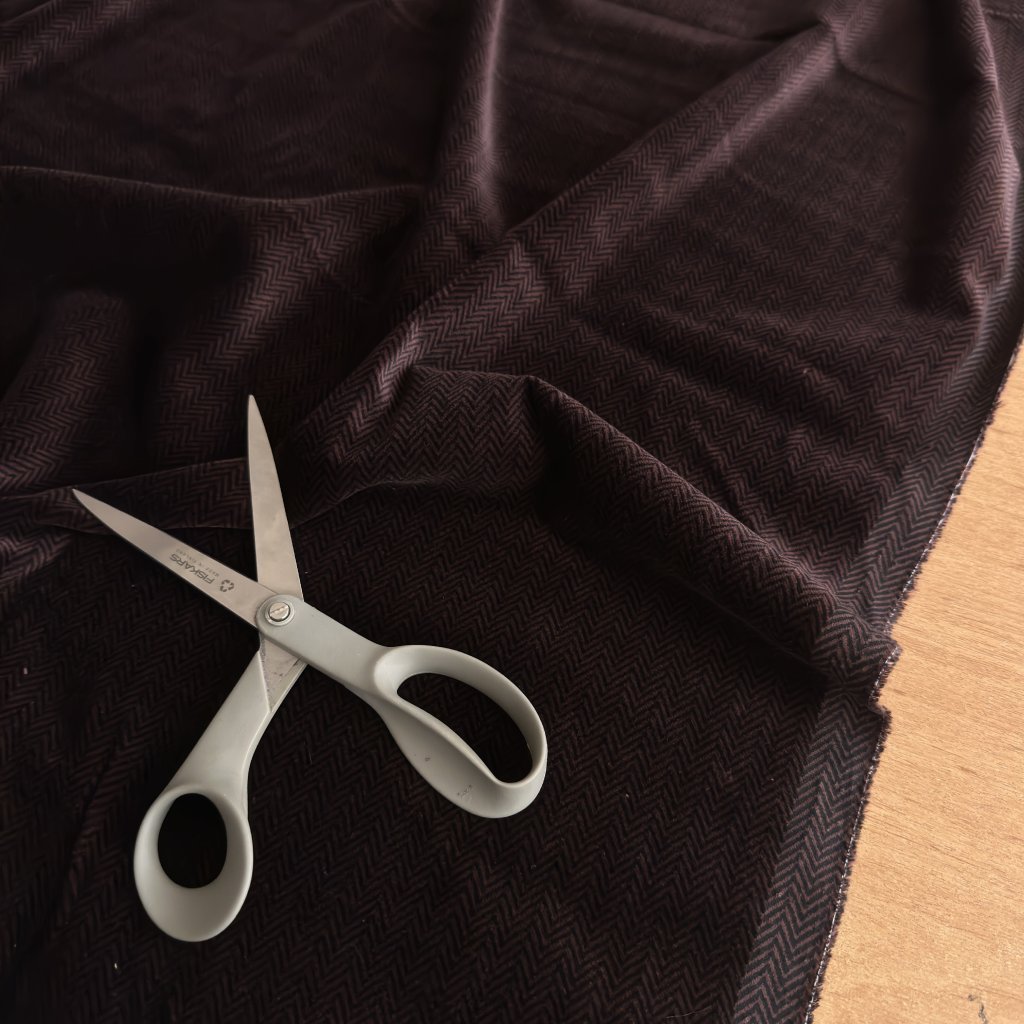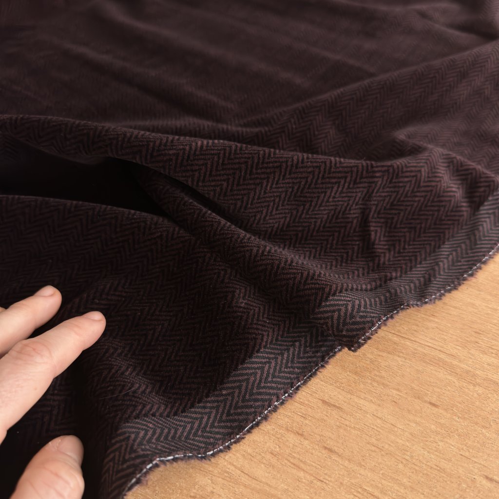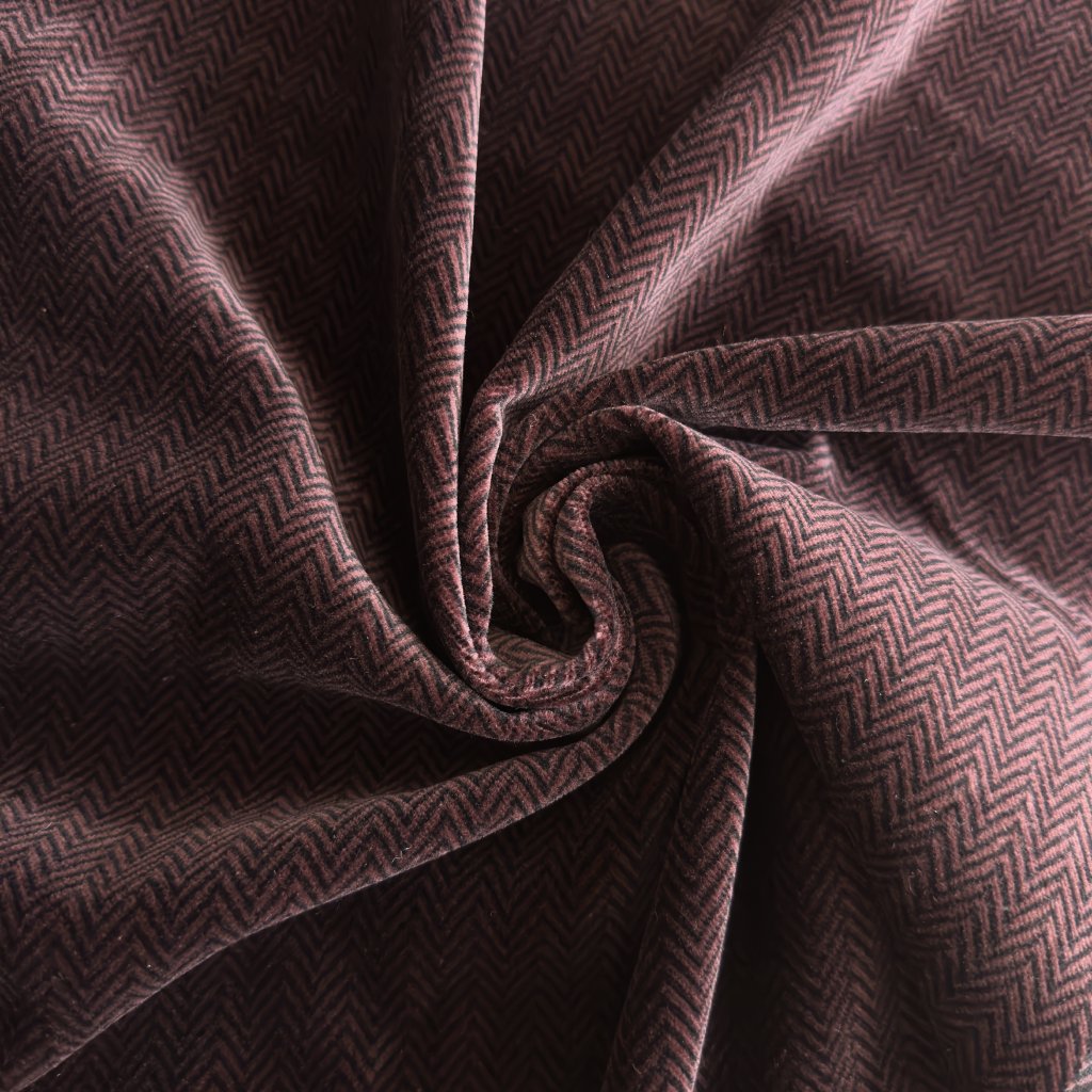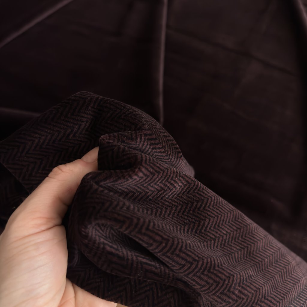 Bavlněný samet fialovo černý vzor rybí kost