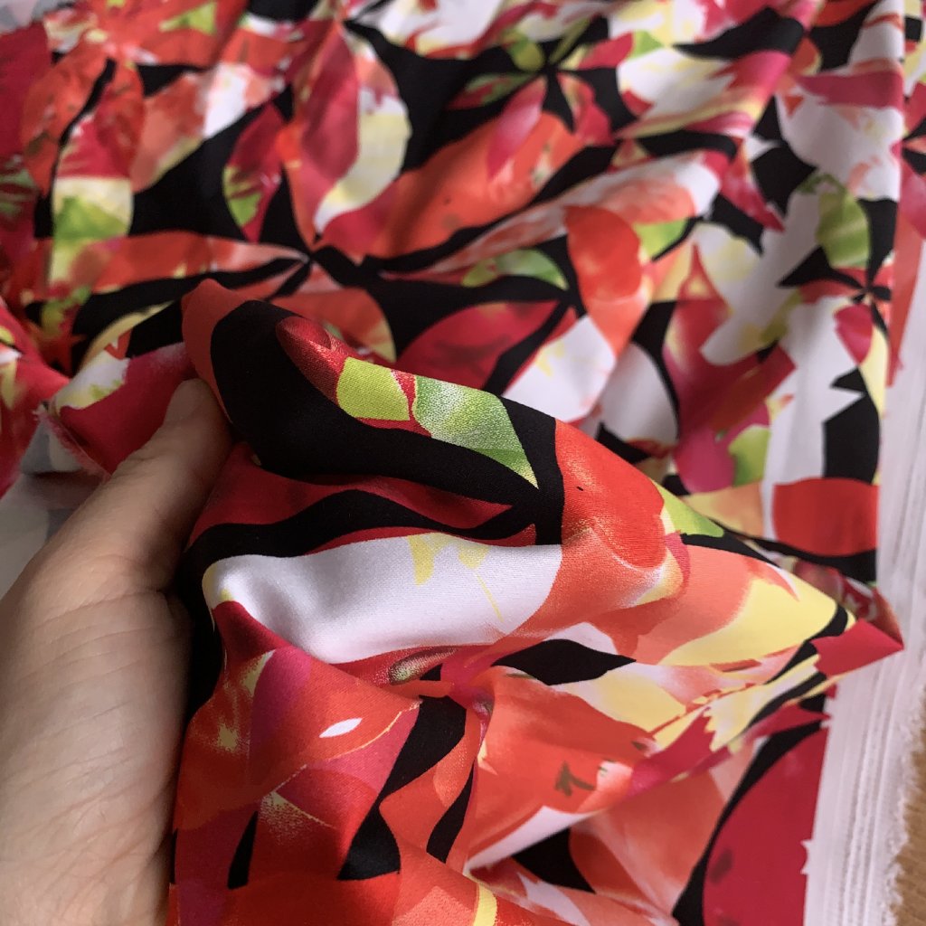 Bavlněný satén s elastanem, divoké květy