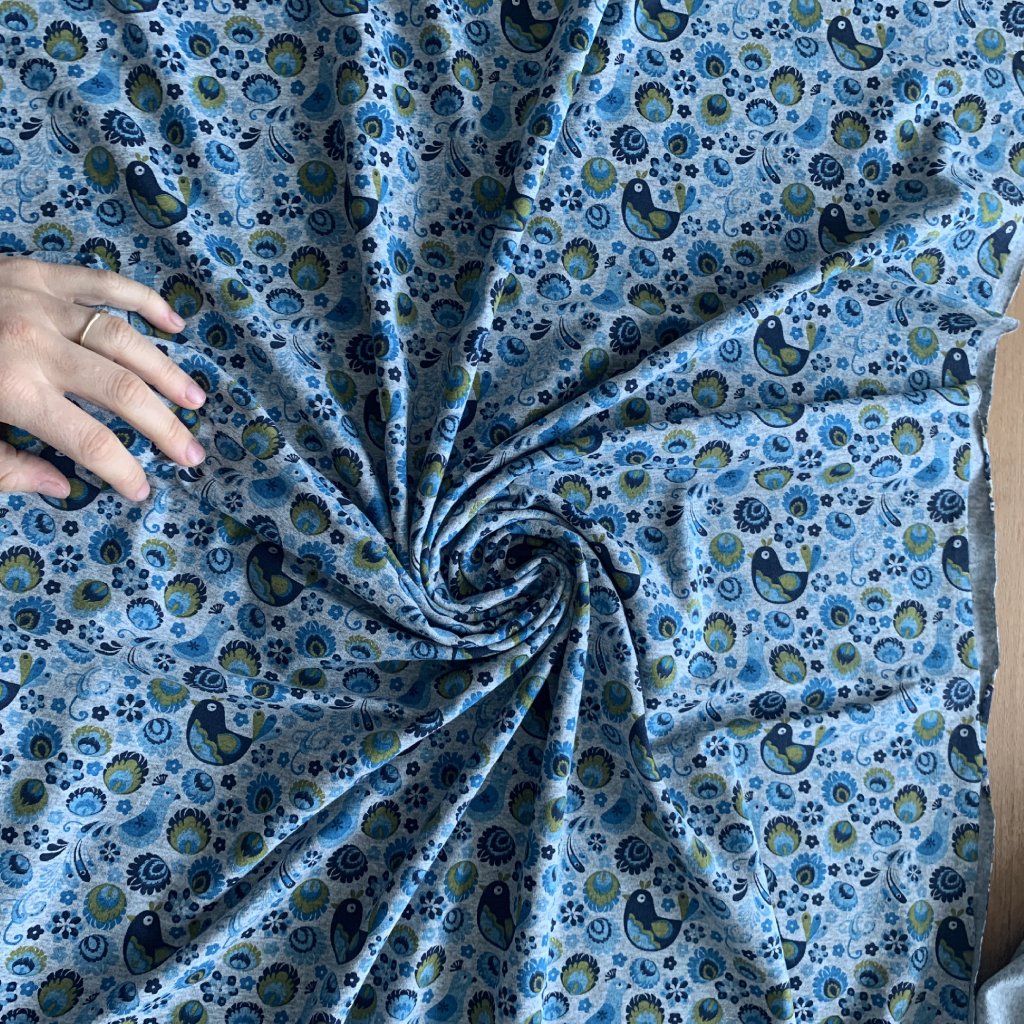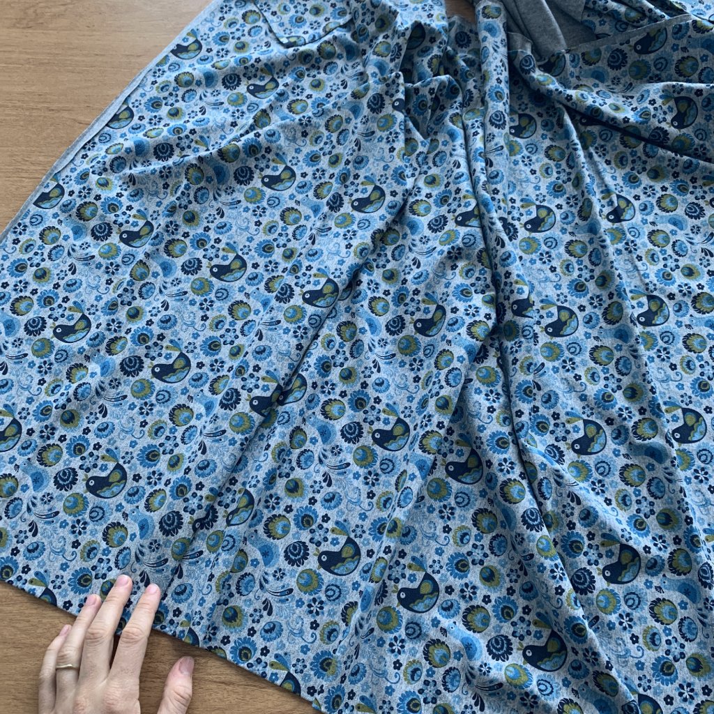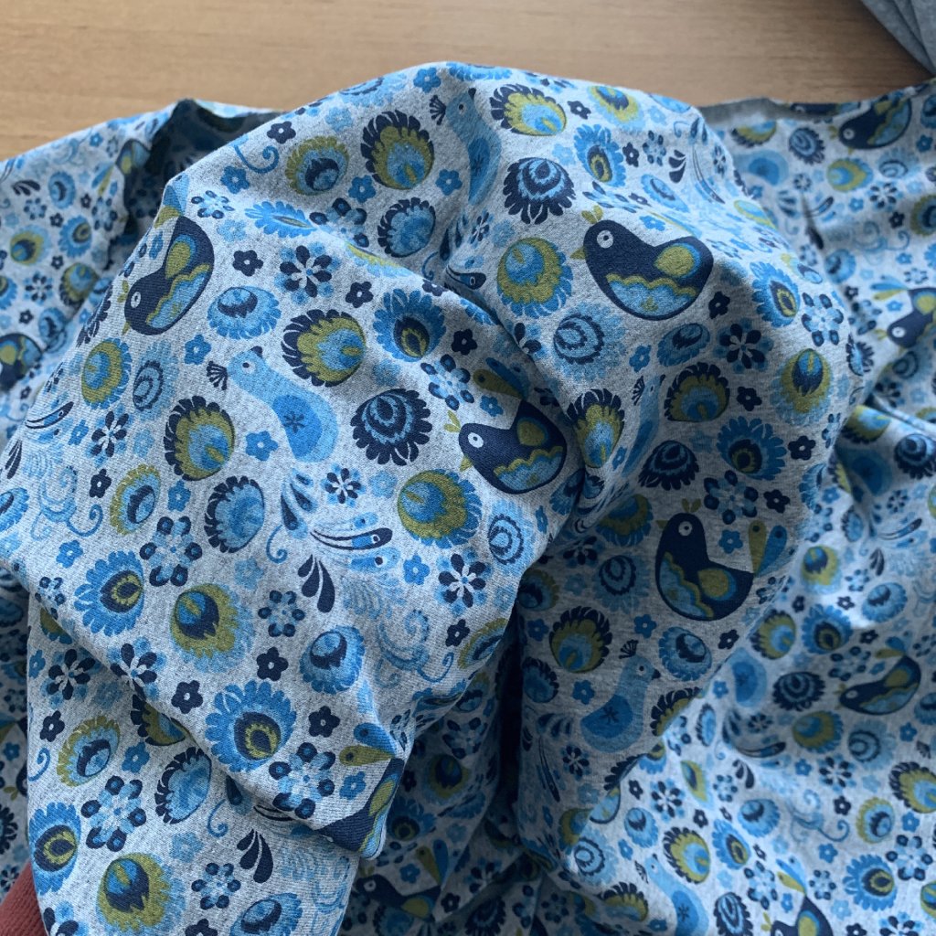 Někdy je příběh materiálů jednoduchý: Nevyužitá metráž od paní z Českého Brodu, která se šitím na zakázku živila, ale rozhodla se již nepokračovat a materiály nám odprodala k dalšímu využití.