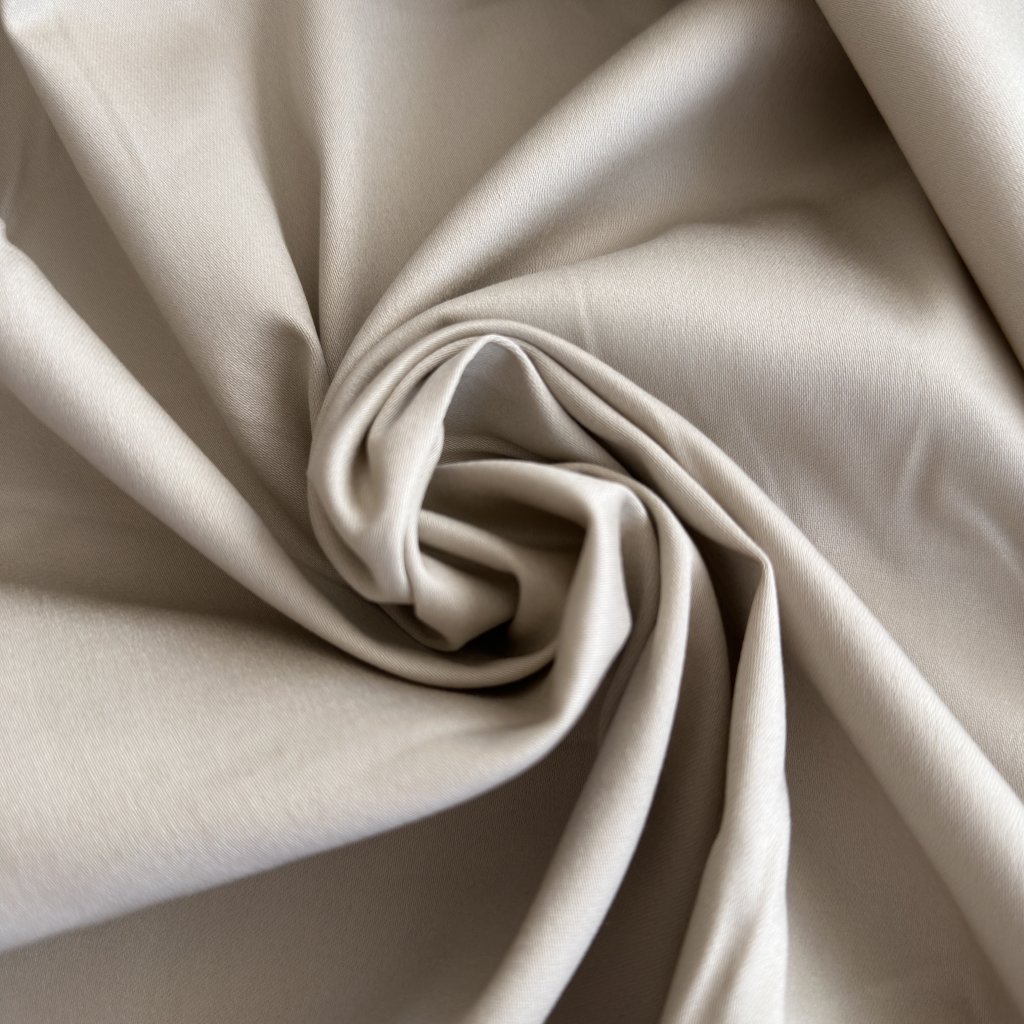 Béžový bavlněný satén s elastanem, pružný