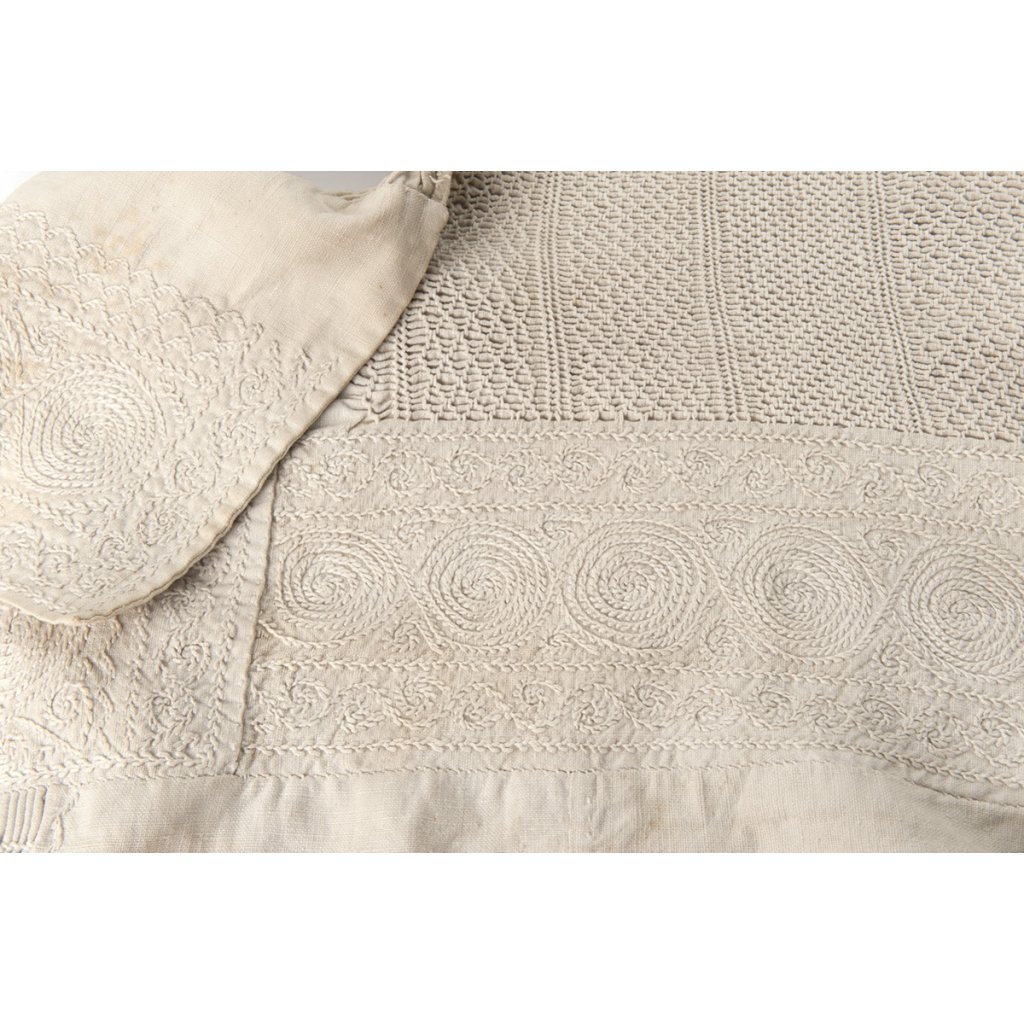 Drtivá většina textilních technik je založena na opakování drobných gest: stehů, ok, příhozů a značek. Když se soustředíme na každý jednotlivý krok, děje se něco pozoruhodného. Mysl se ztiší a každodenní starosti ustoupí do pozadí. Na čas se ponoříme do rytmu procesu a řemeslo se stává formou meditace. Podobně jako v hudbě nejsou důležitá jen samotná gesta, ale i mezery mezi nimi. V tisku je to negativní prostor, v pletení napětí příze. Právě jemná souhra pohybu a pauzy, gesta a rozestupu dává ručně vytvořenému objektu životnost, kterou průmyslová výroba nikdy nedokáže plně napodobit.