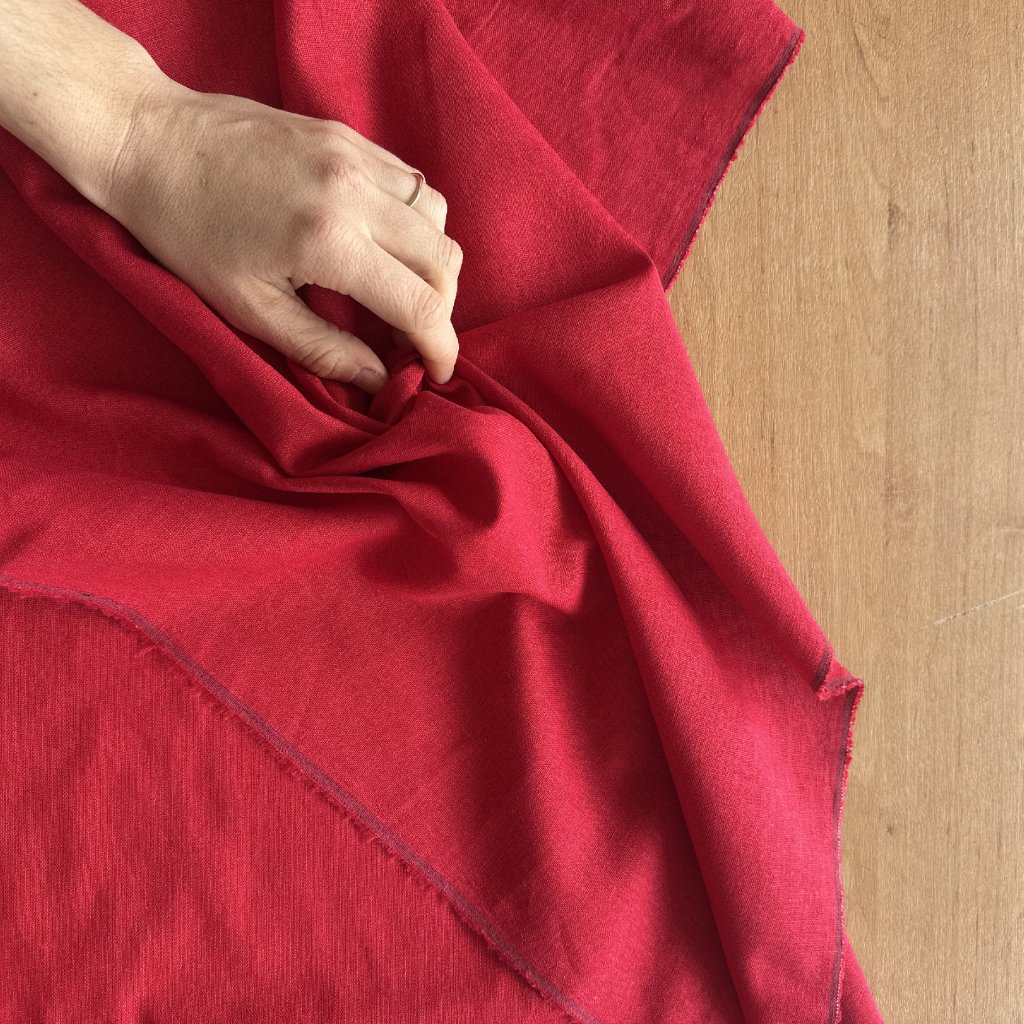 Červené lněné plátno s viskózou, šatovka 30%len 70%viskóza