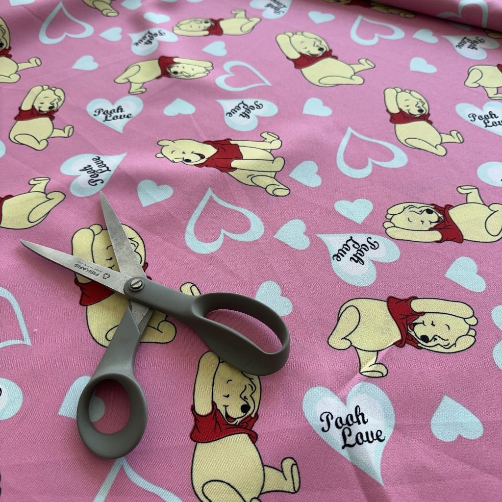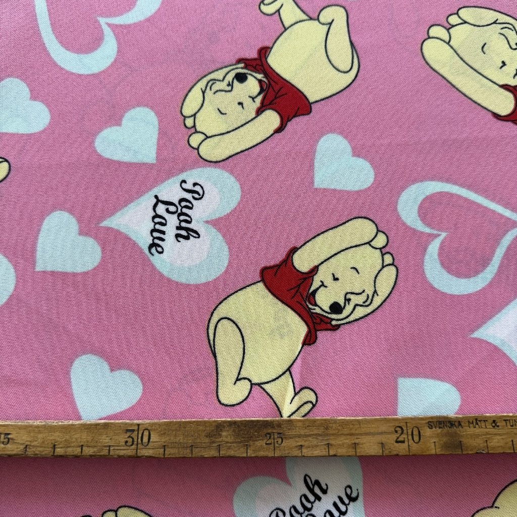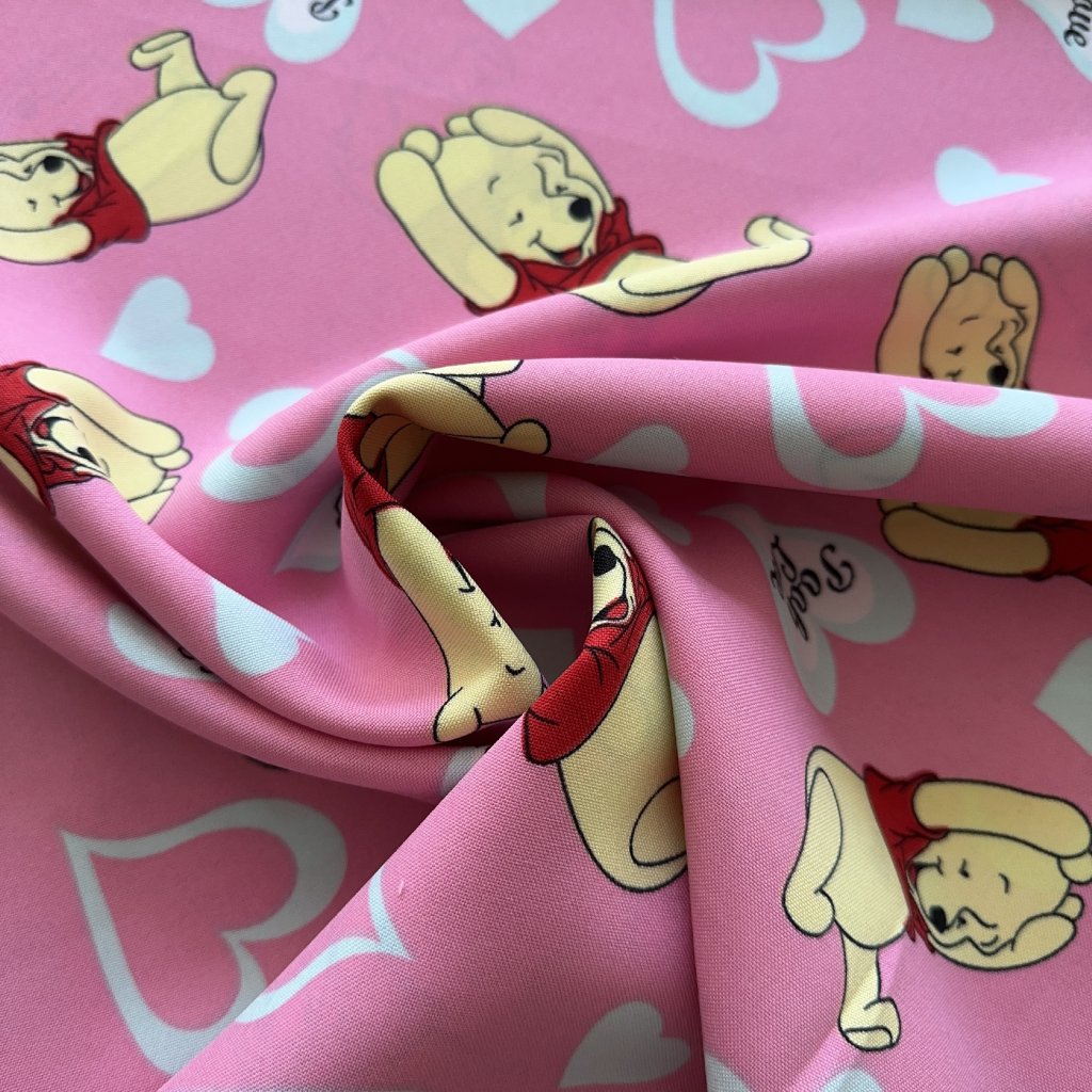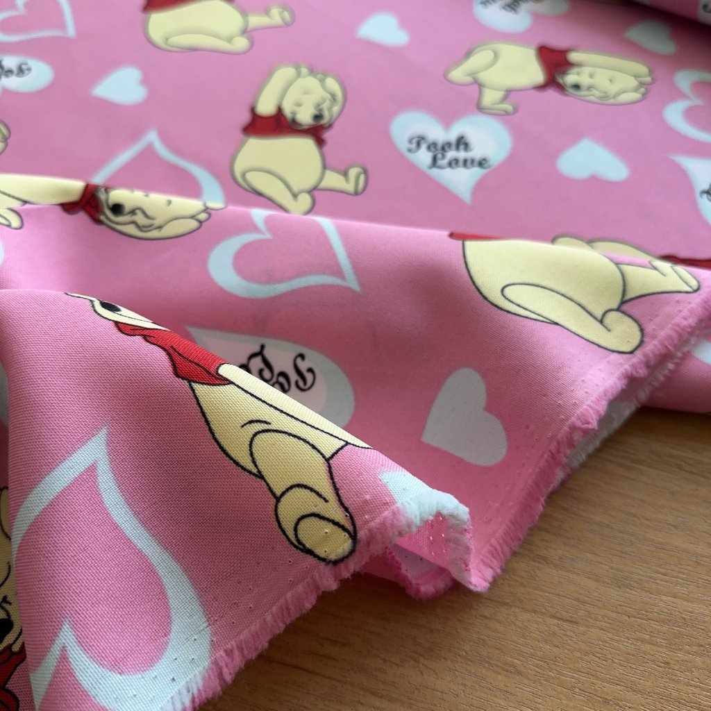 Dekorační polyesterová látka, medvídek Pú na růžové