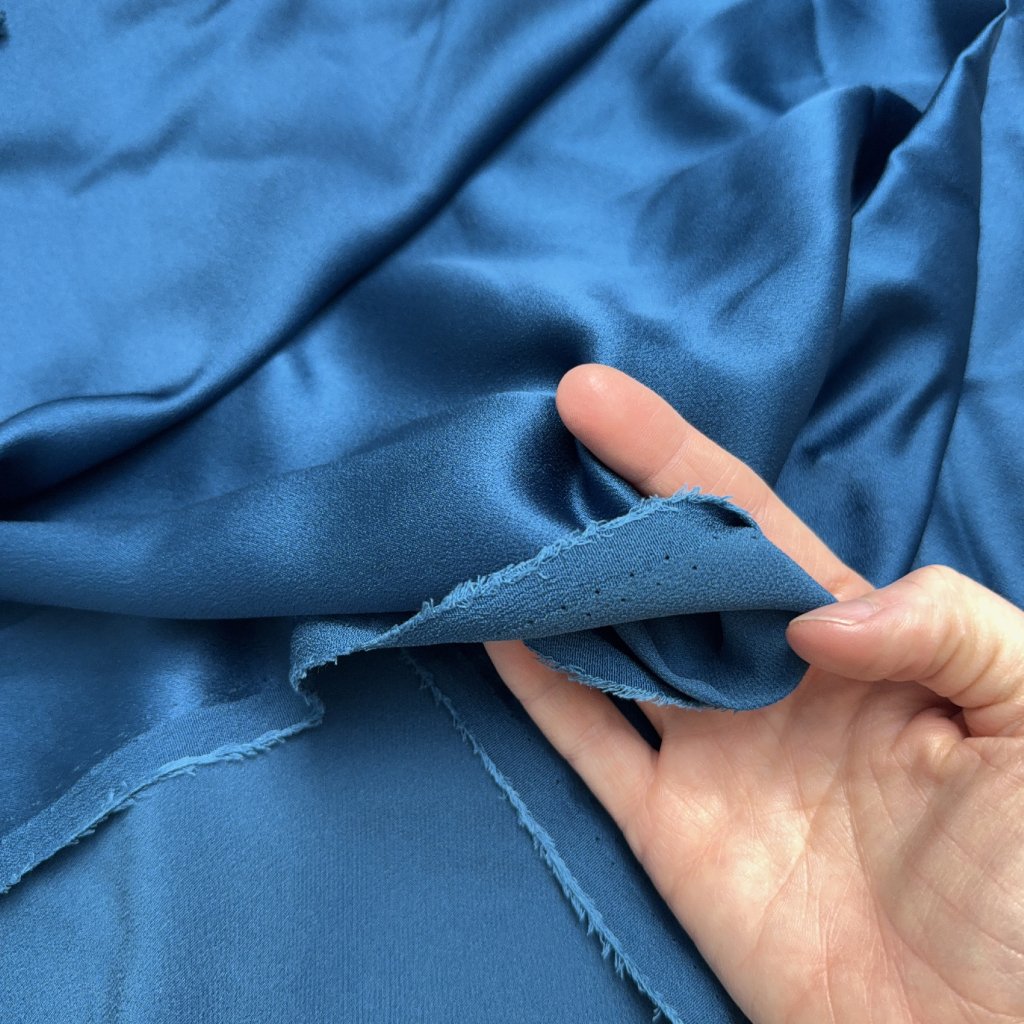 Hluboce modrý satén hedvábí a syntetická vlákna