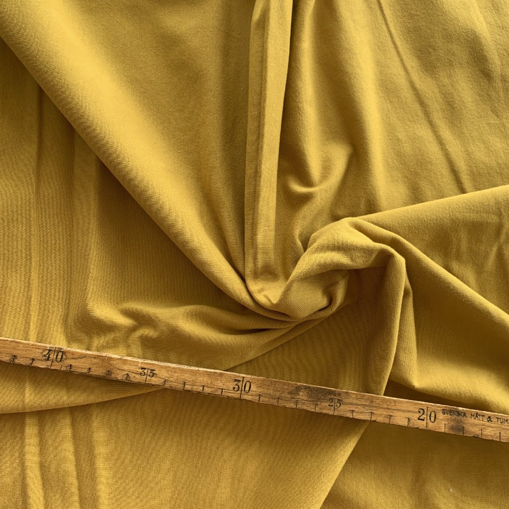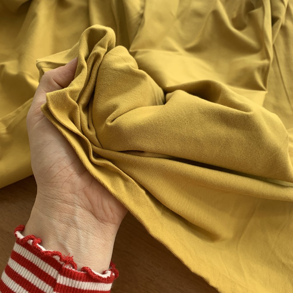 Hořčicově žlutý tričkový bavlněný úplet s elastanem