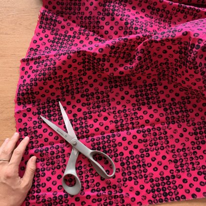 Složení: bavlna, viskóza Šíře role: 150 cm Gramáž: 330 g/m² Cena je uvedena za bežný metr. Materiál je ve slevě kvůli kazu- viz poslední foto. Místy se vyskytují drobné...