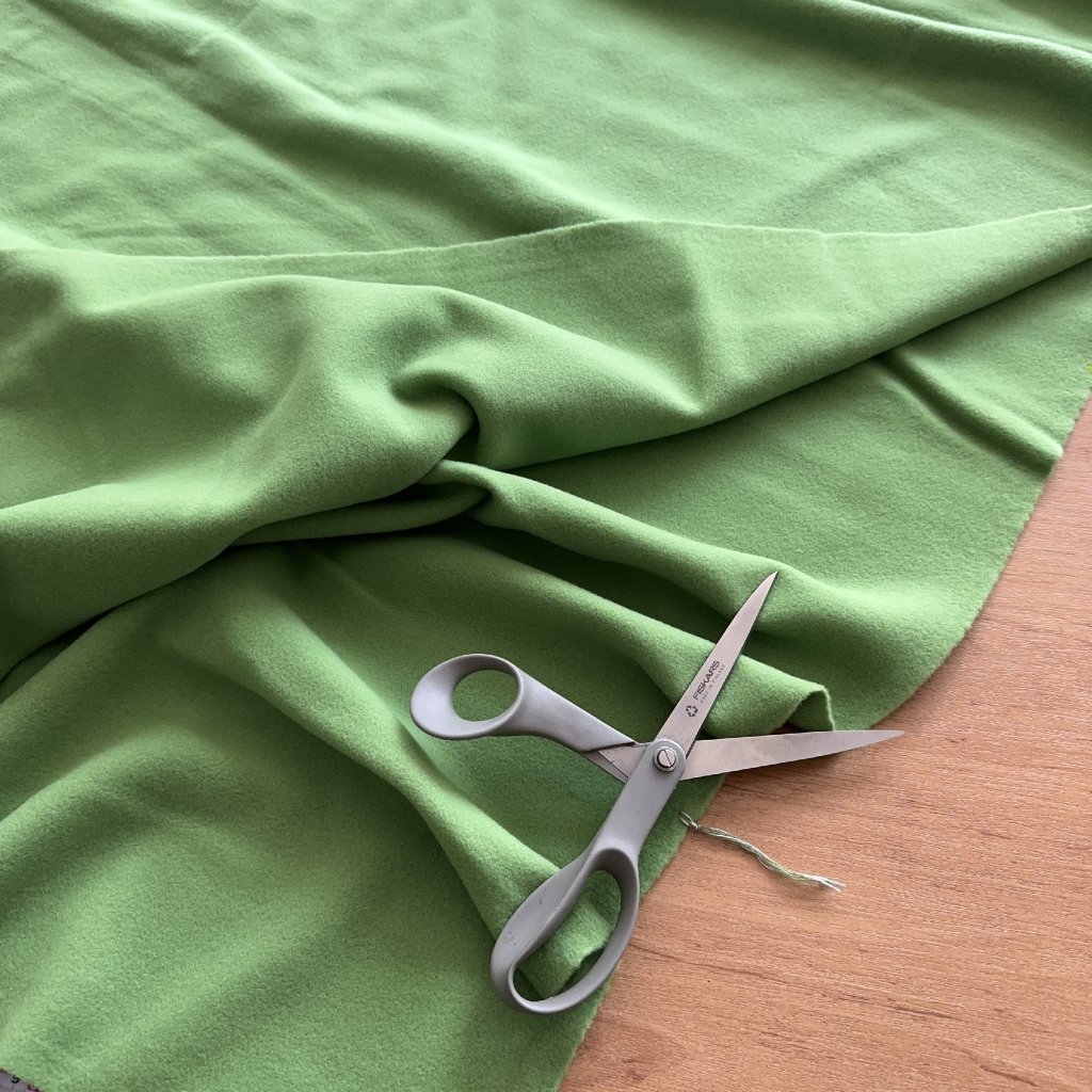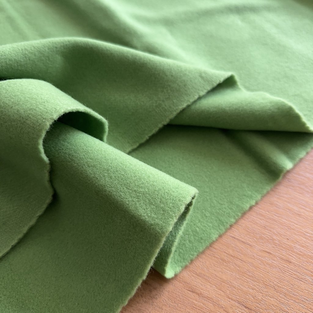 Kabátový flauš/velur 70%vlna 20% polyamid 10% kašmír kiwi