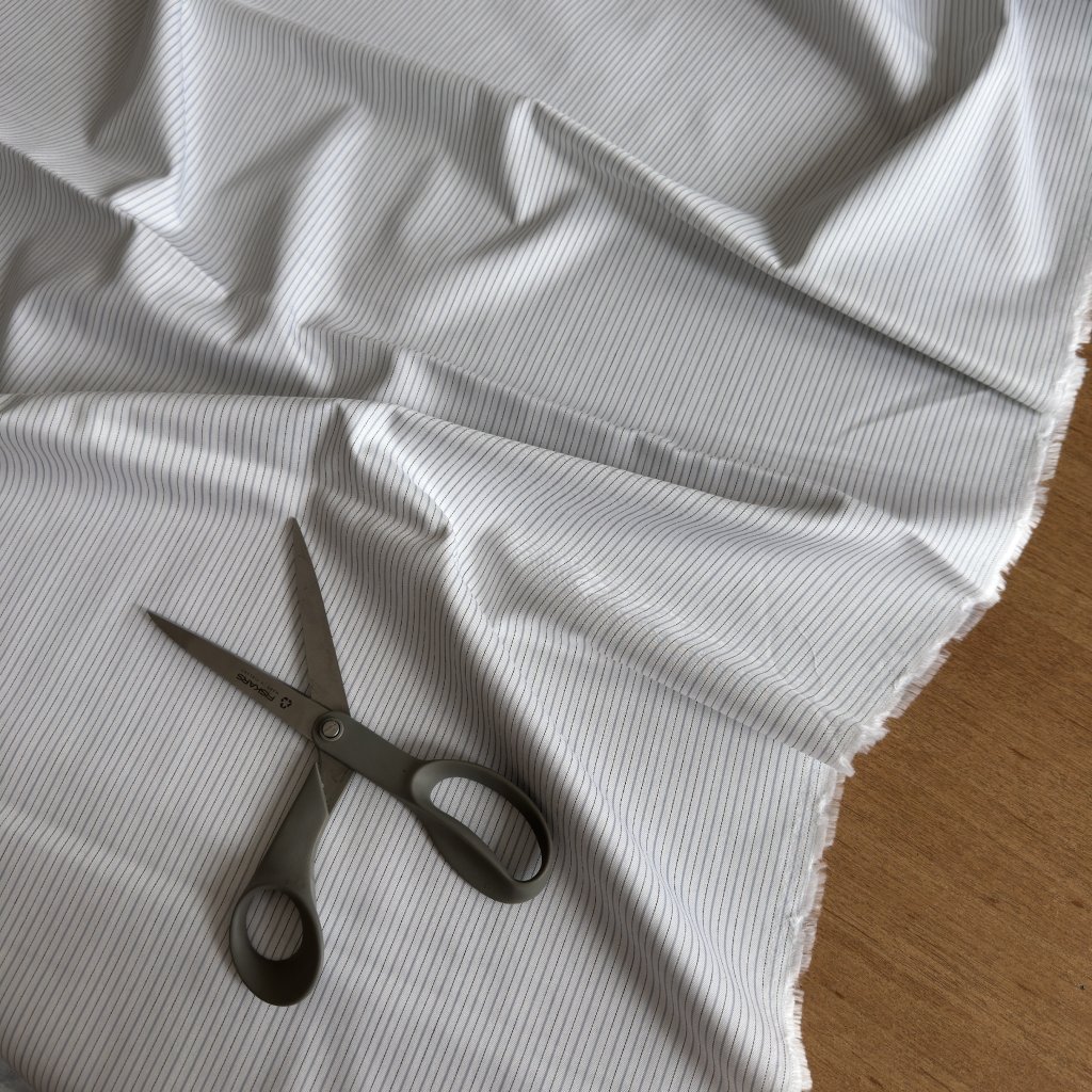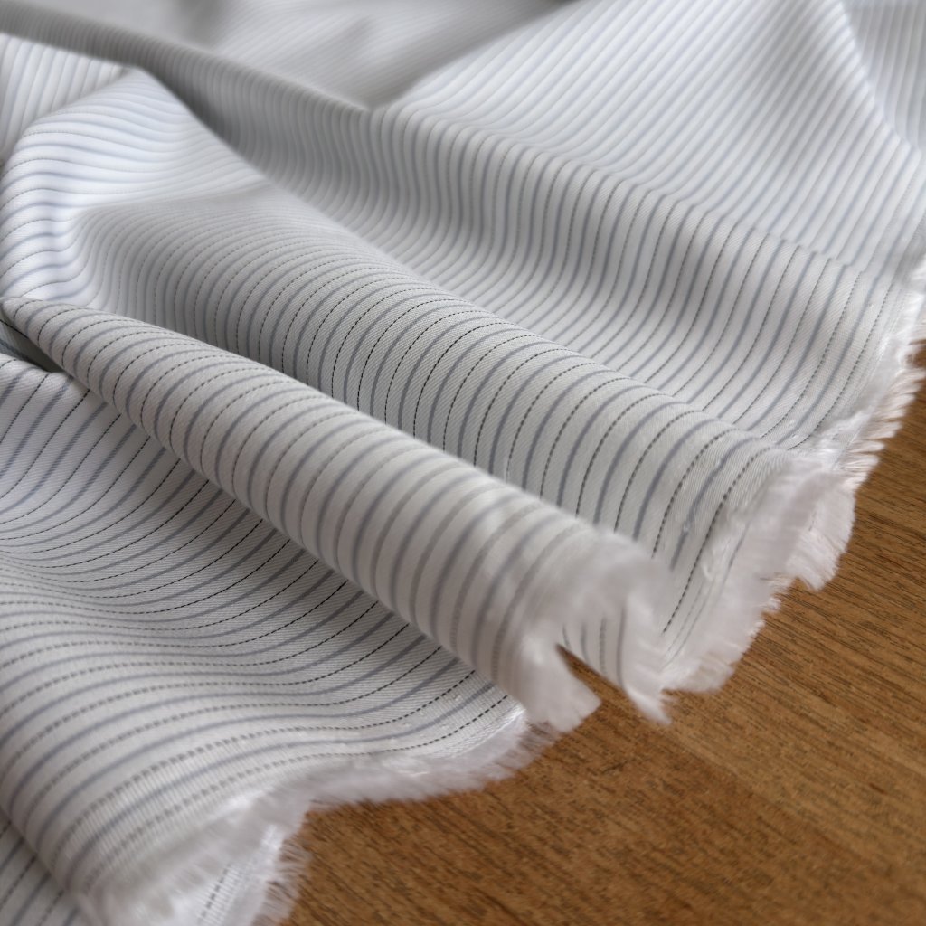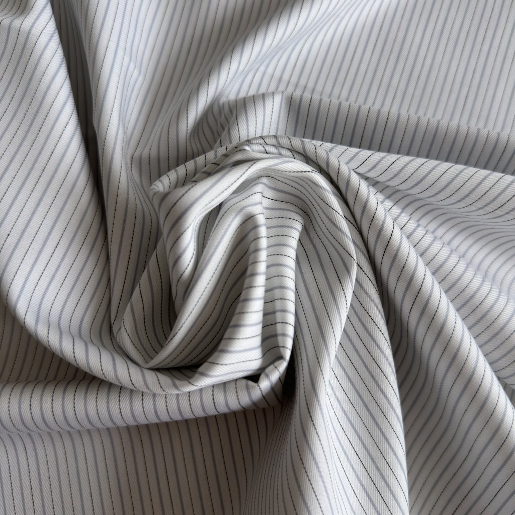 Košilovina, bavlněný bílý kepr, šedý/černý proužek