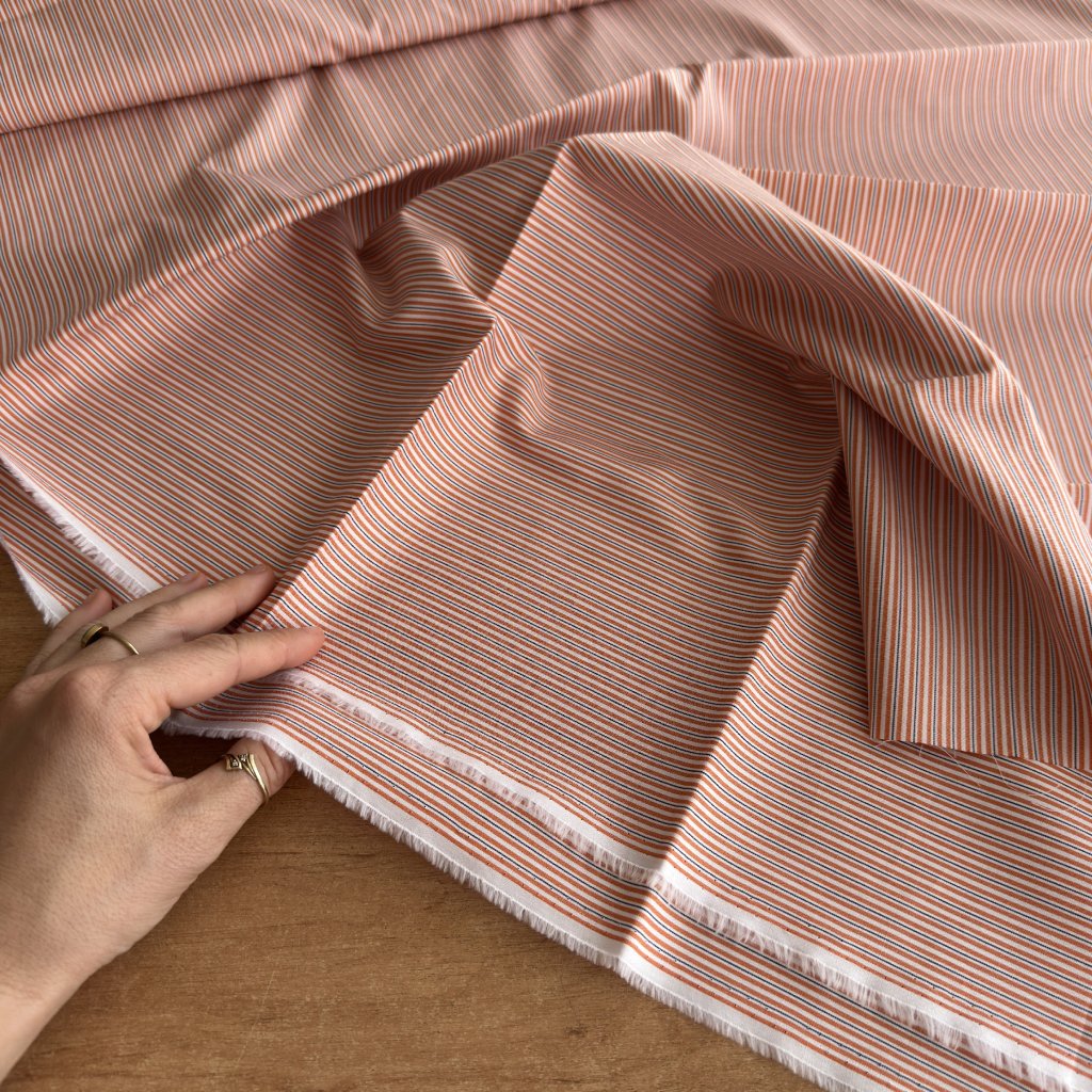 První "drop" od paní Dagmar jsou velice kvalitní košiloviny, jednobarevné i se vzorkem. Některé byly vyrobeny ve Švýcarsku firmou Brennet, část pochází z tuzemských výroben košilovin Mileta, Perla a Sintex. Některým rolím bohužel chybí popis o jejich původu. Převážně se jedná o stoprocentní bavlnu, někde je příměs polyesteru, kvůli snadnější údržbě a snížení mačkavosti.