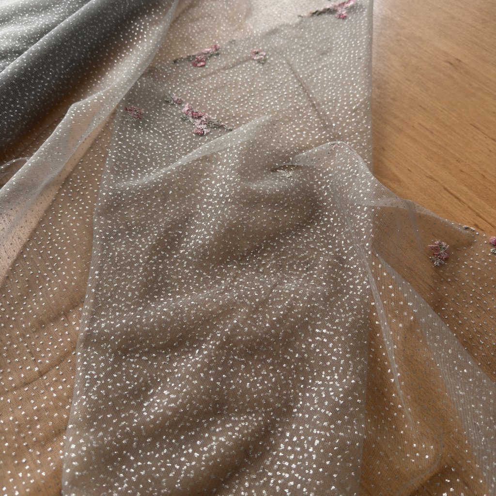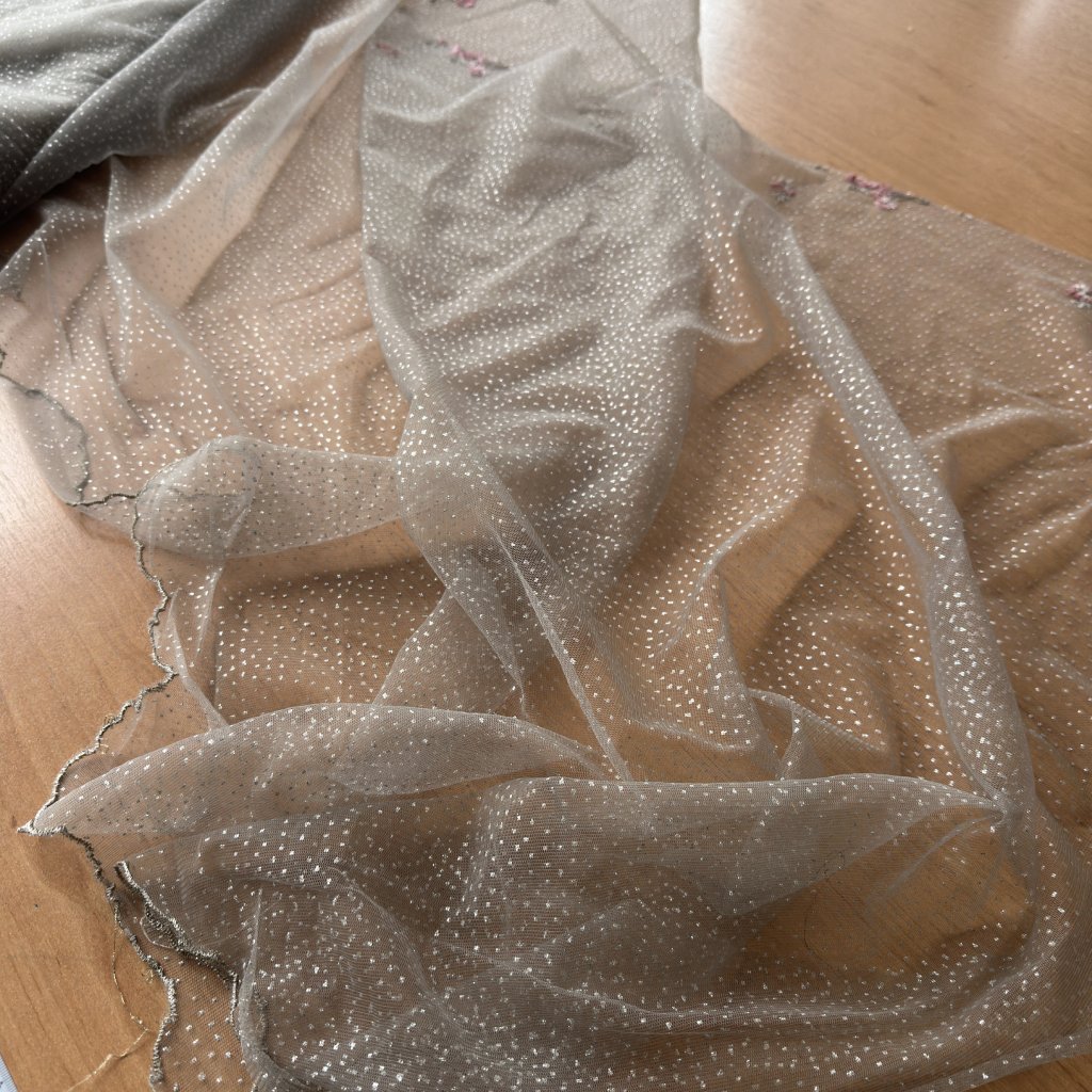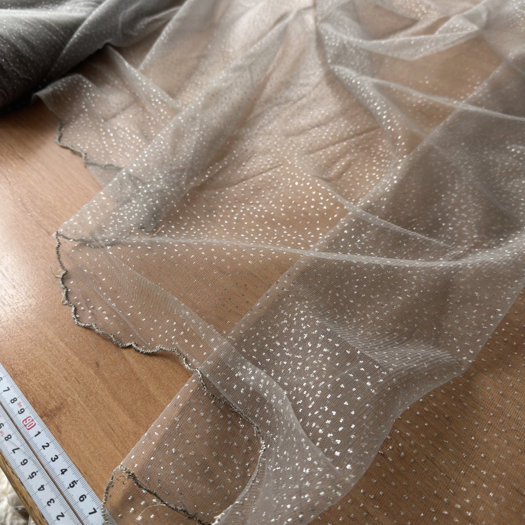 Kouřově šedivý lehký tyl se stříbrnými třpytkami