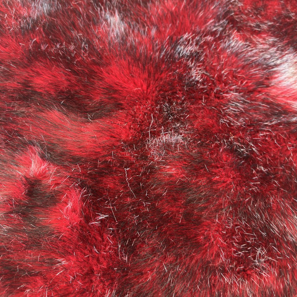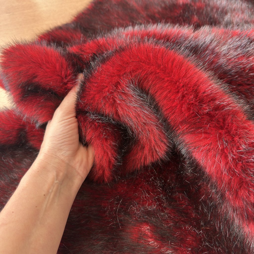 Kožešina červeno černá, synt. na bavlněném podkladu