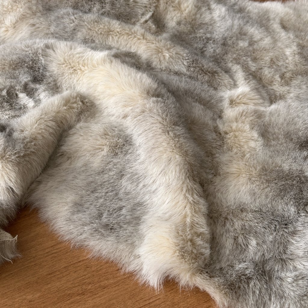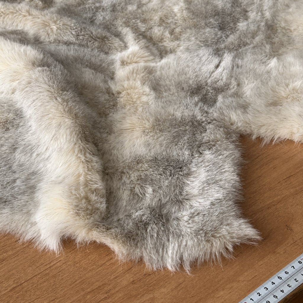 Kožešina krémovošedá, synt.vl. na bavlněném podkladu