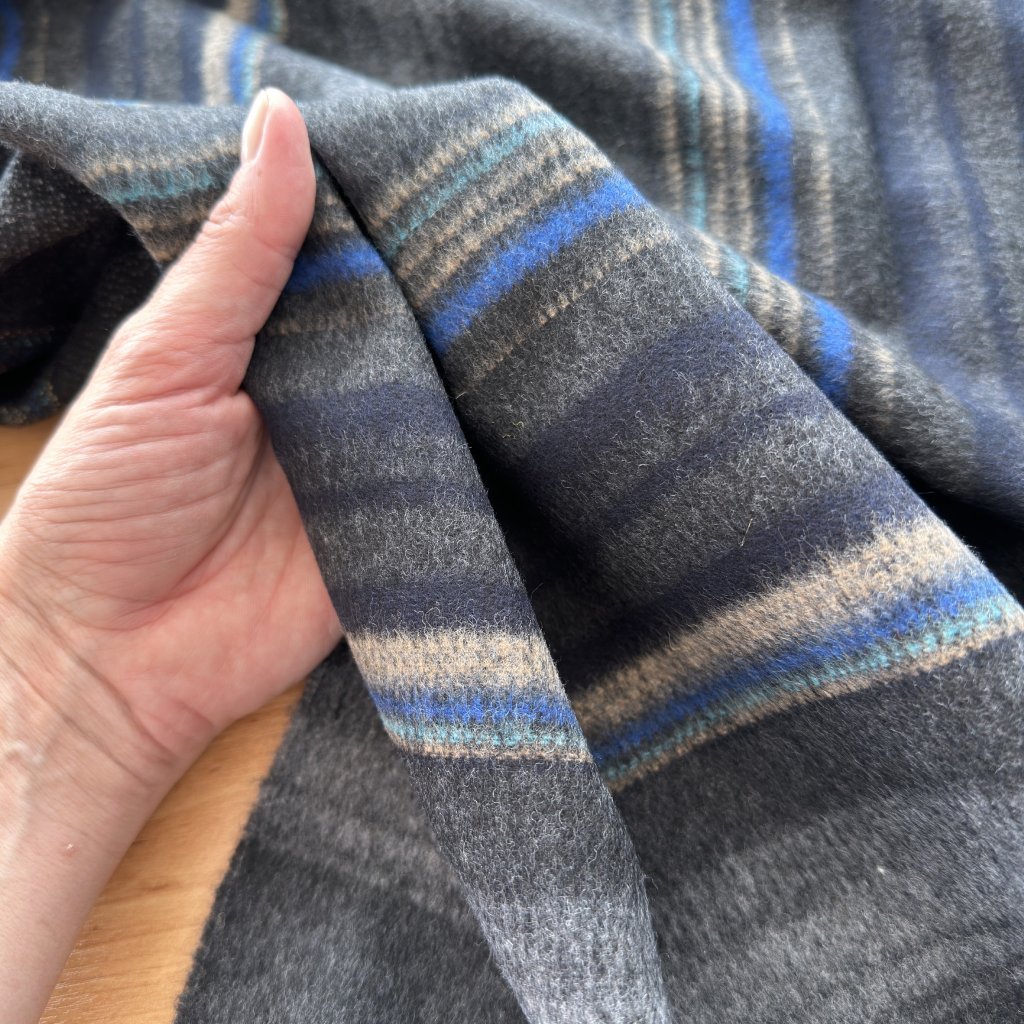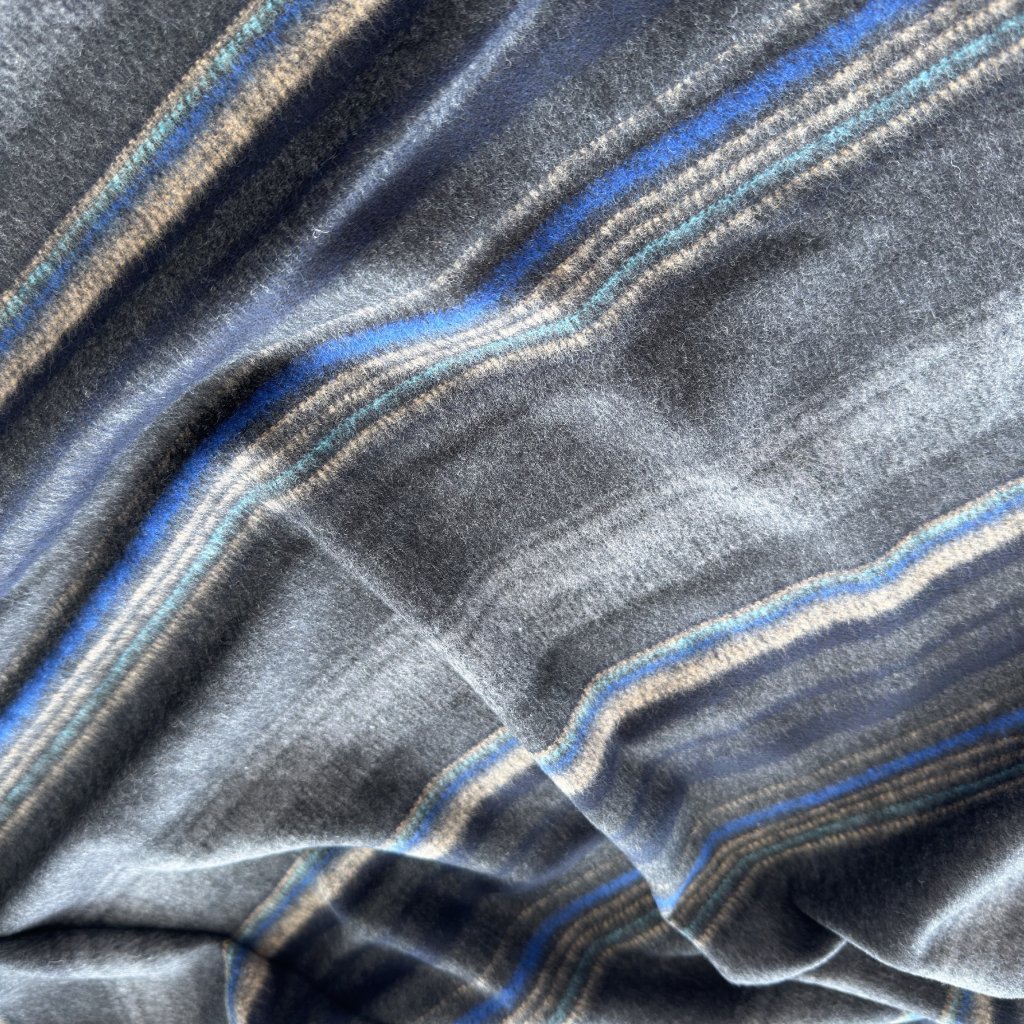 Lehčí vlněný velur s příměsí modrošedé pruhy