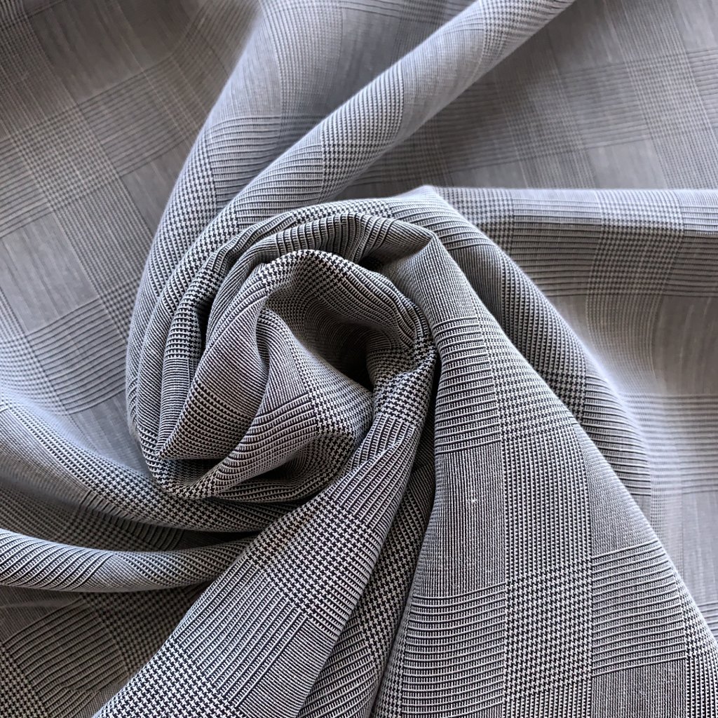 Lehká bavlněná kostýmovka/šatovka s polyesterem, šedé káro
