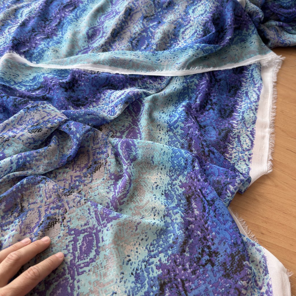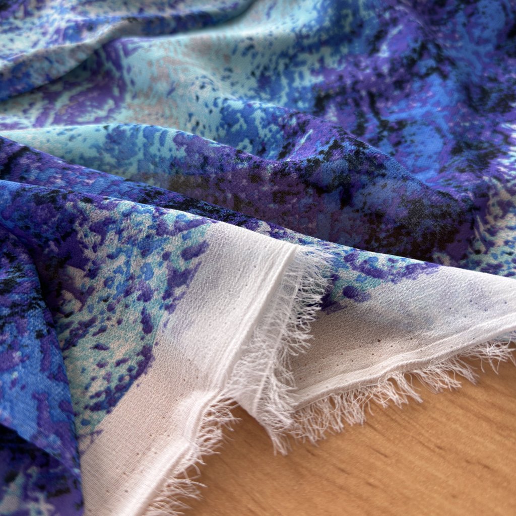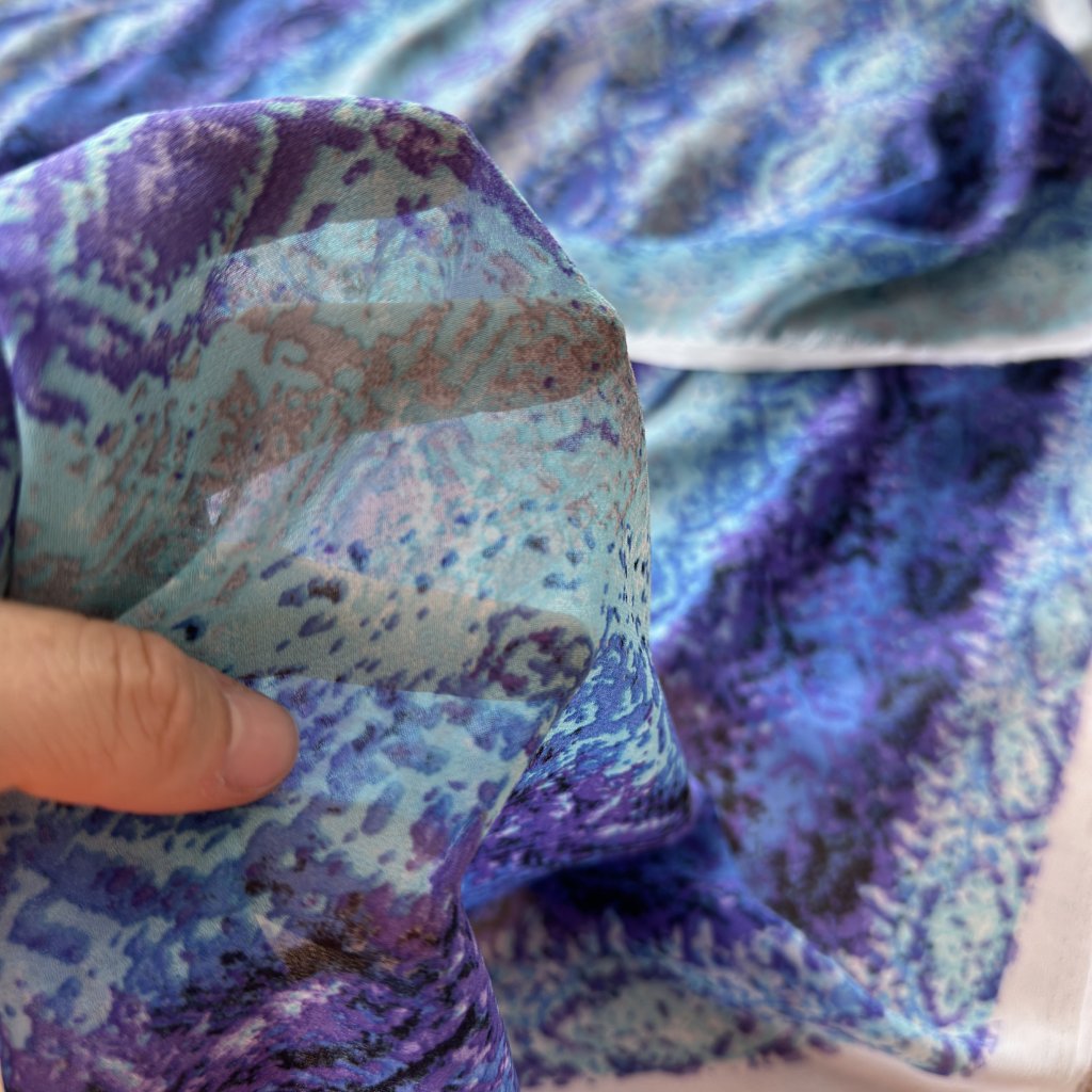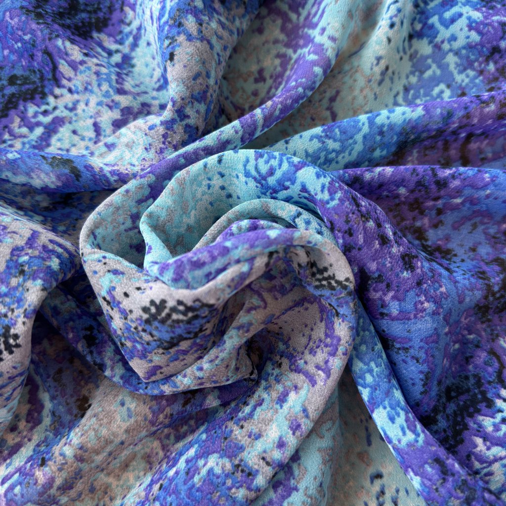 Lehký šifon retro vzor modro fialový