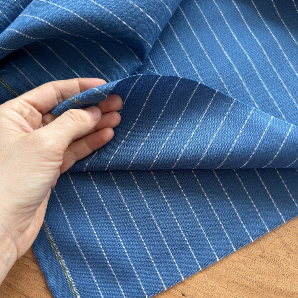 Modré rongo kostýmovka s bílým proužkem s vlněnou příměsí