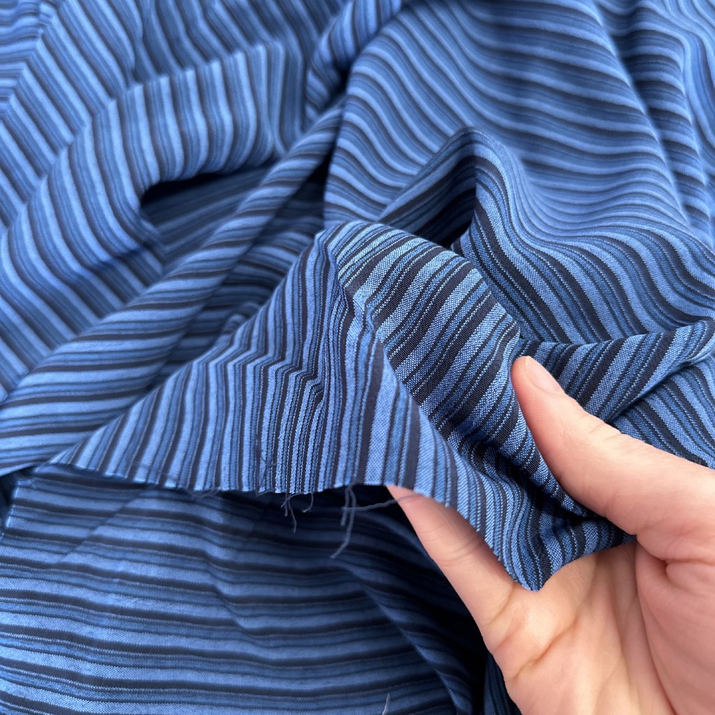 Modročerný proužek, lehký krep, šatovka viskóza