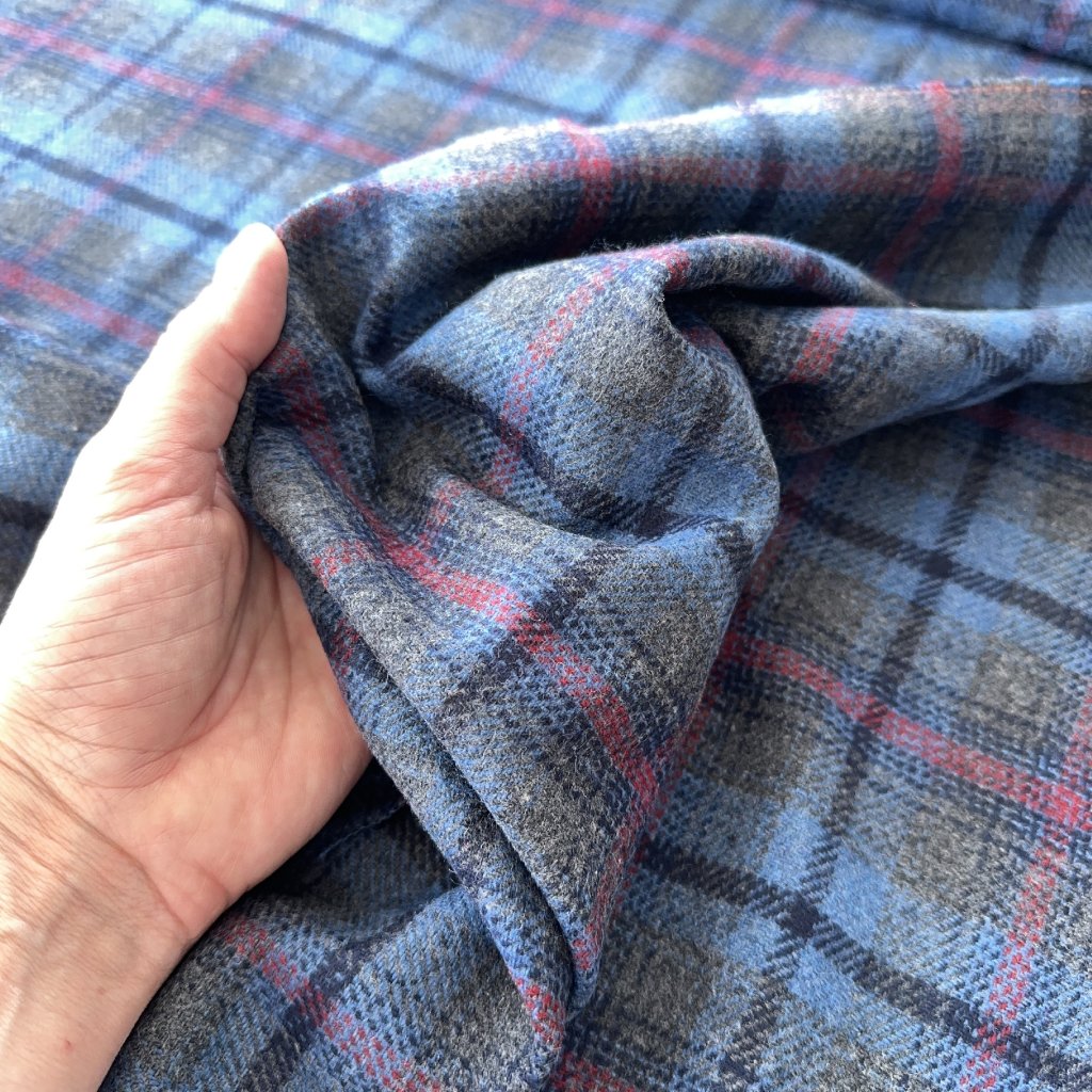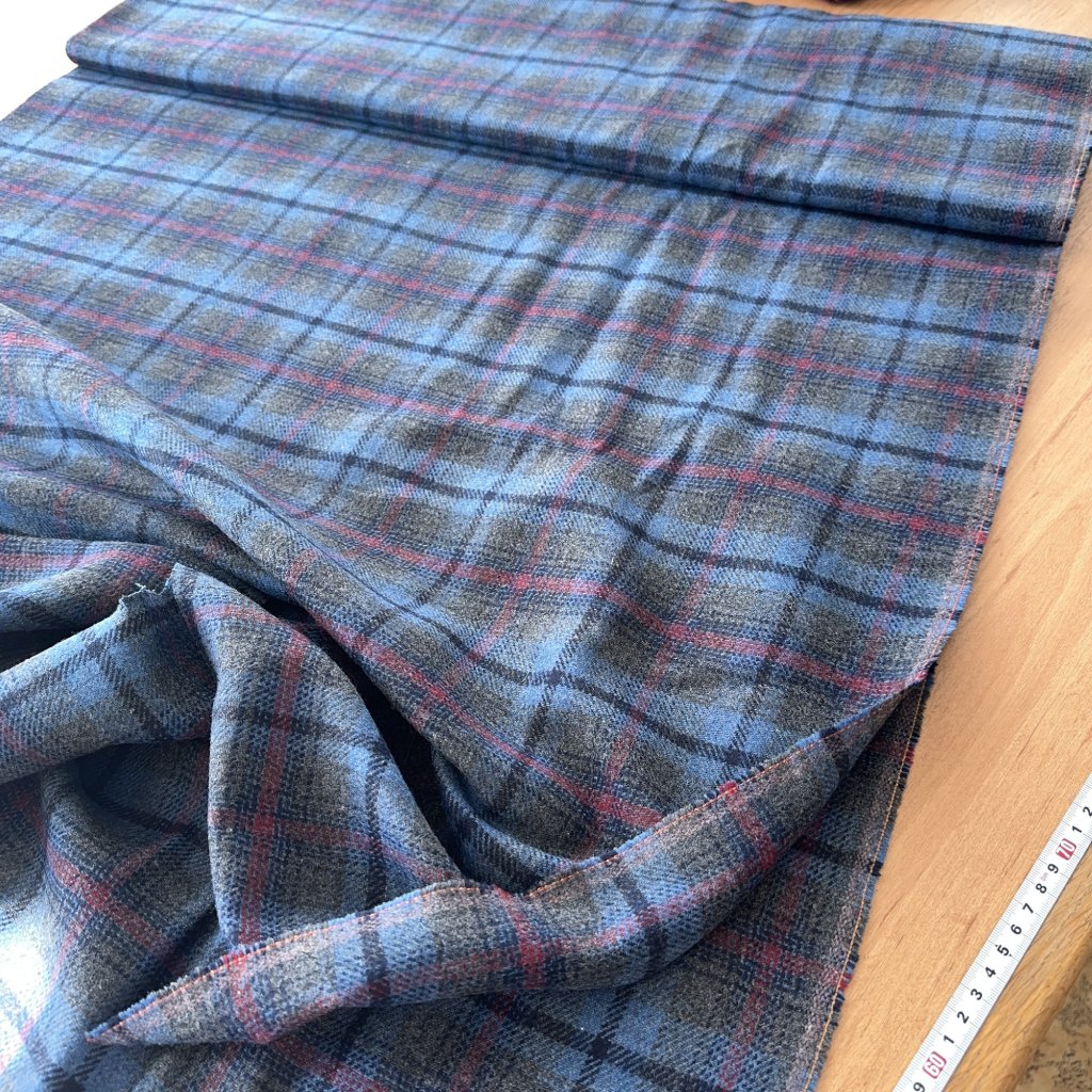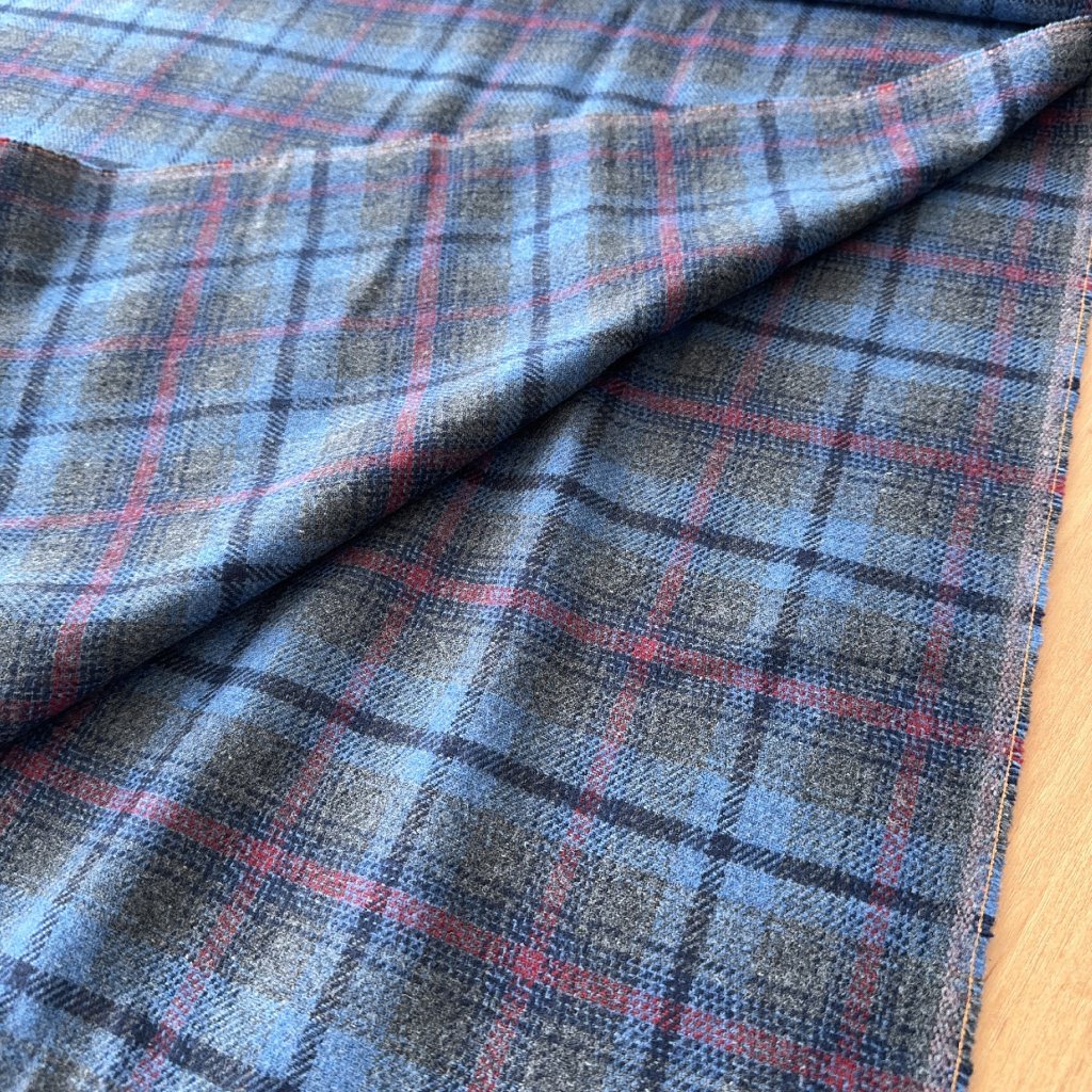 Modrý károvaný tvíd vlna se syntetickými vlákny