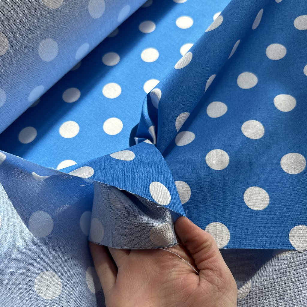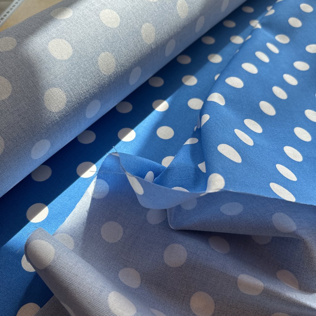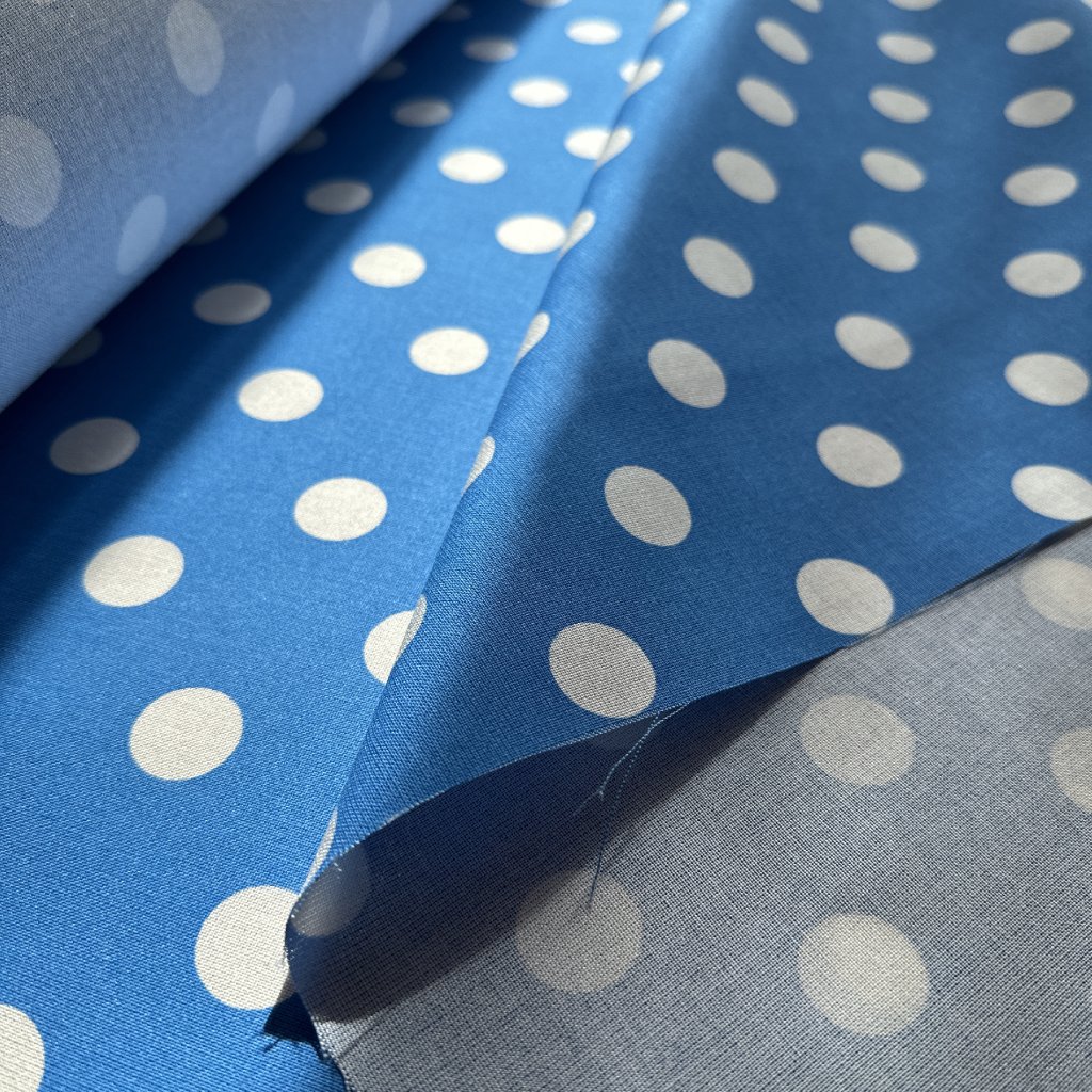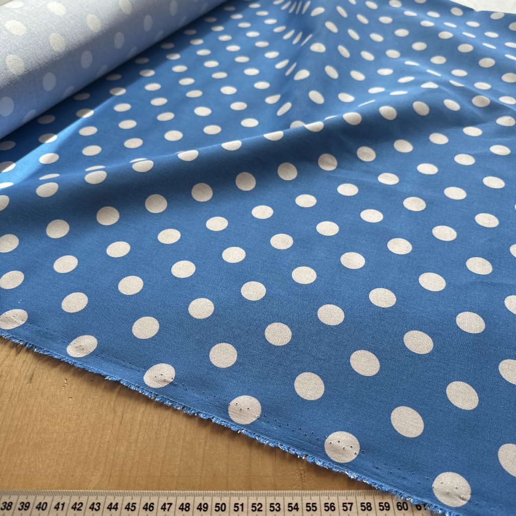 Modrý puntík velký, 100% tencel, plátno/šatovka