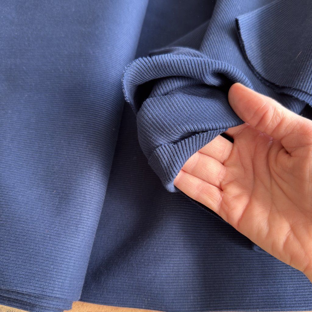 Navy náplet žebro tunel, bavlna s elastanem