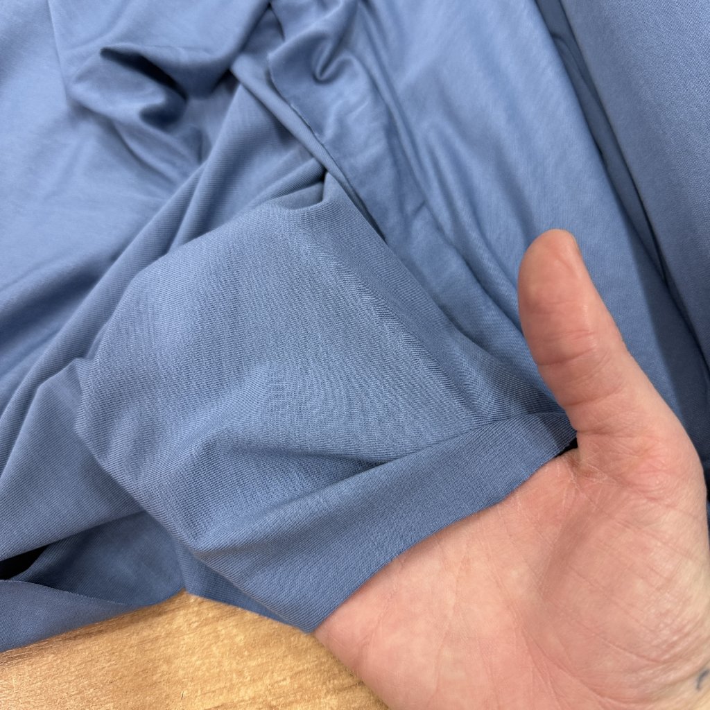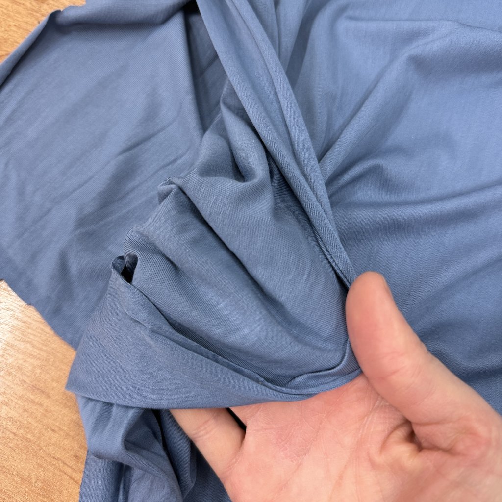 Ocelově modrý tričkový bambusový úplet