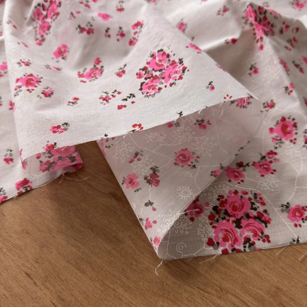 Plátno lehce transparentní retro květy, ba/synt.vl.
