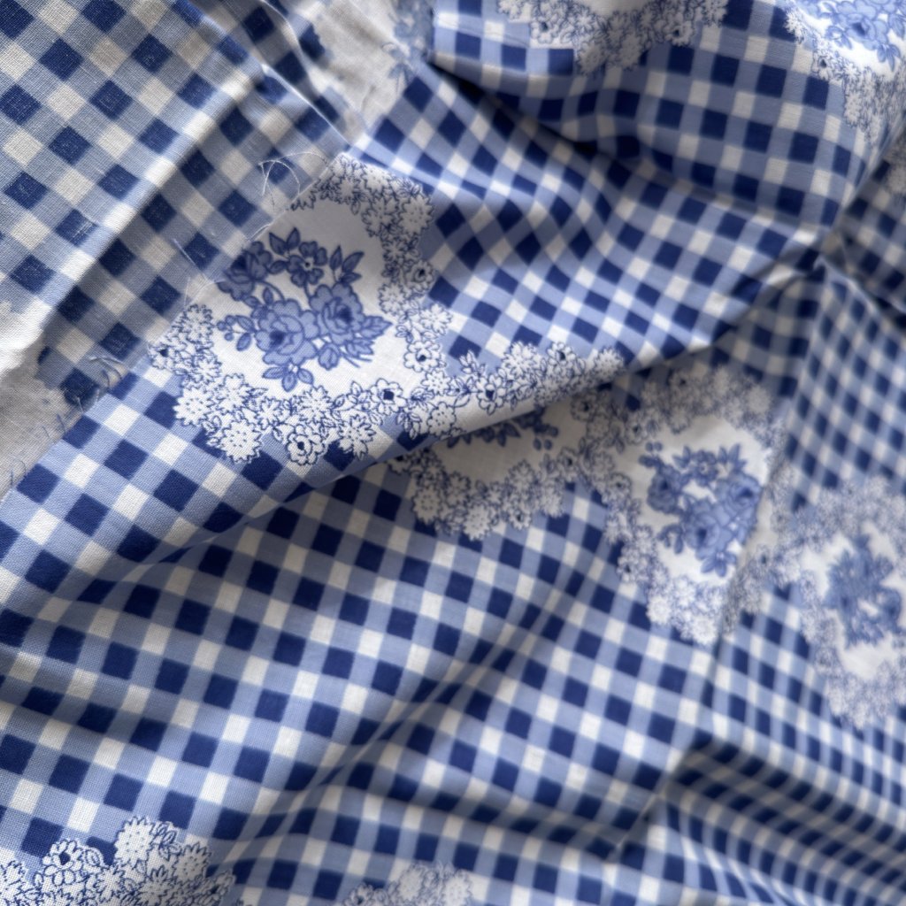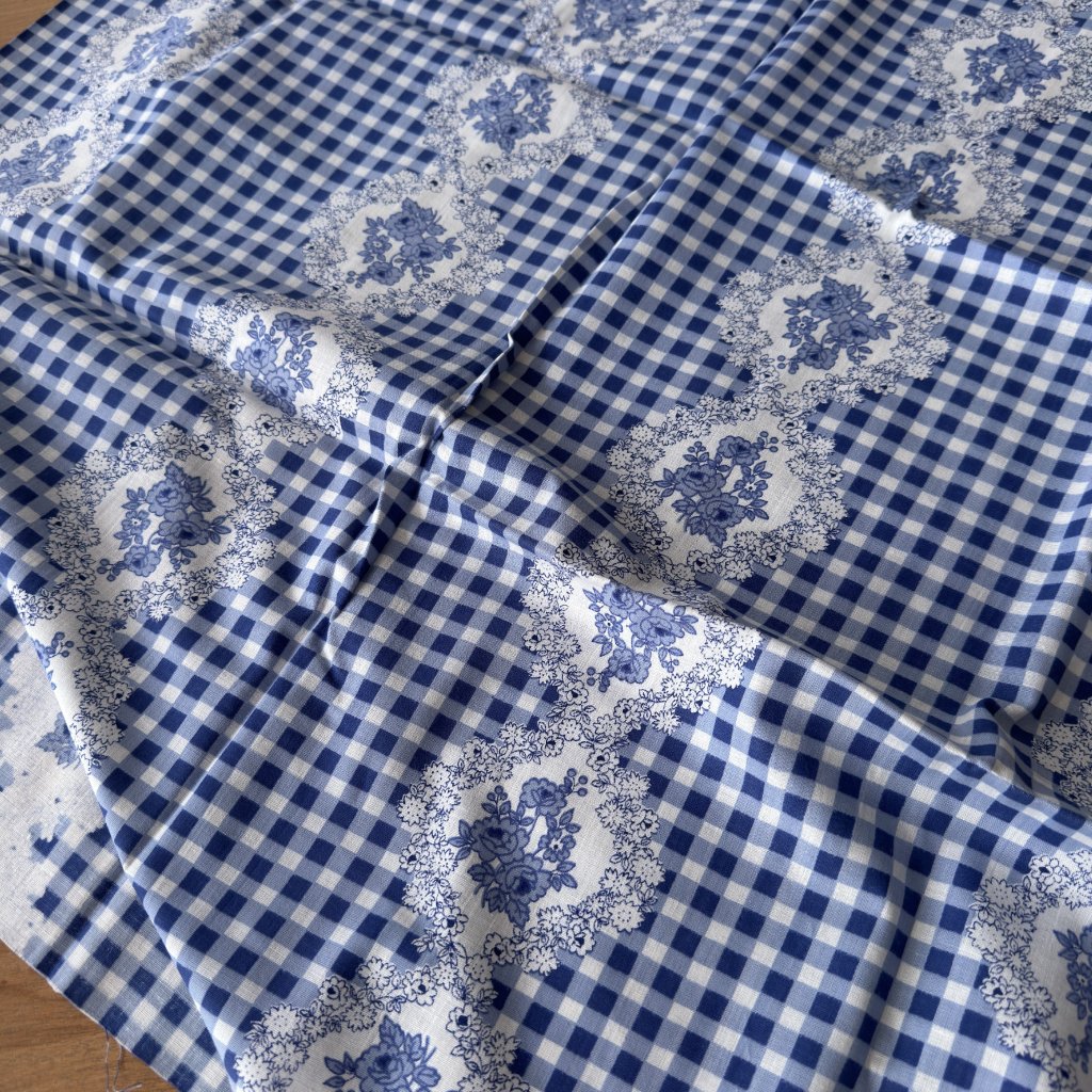 Plátno retro kostka / květy, bavlna