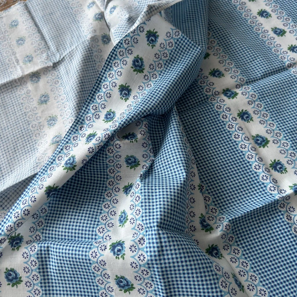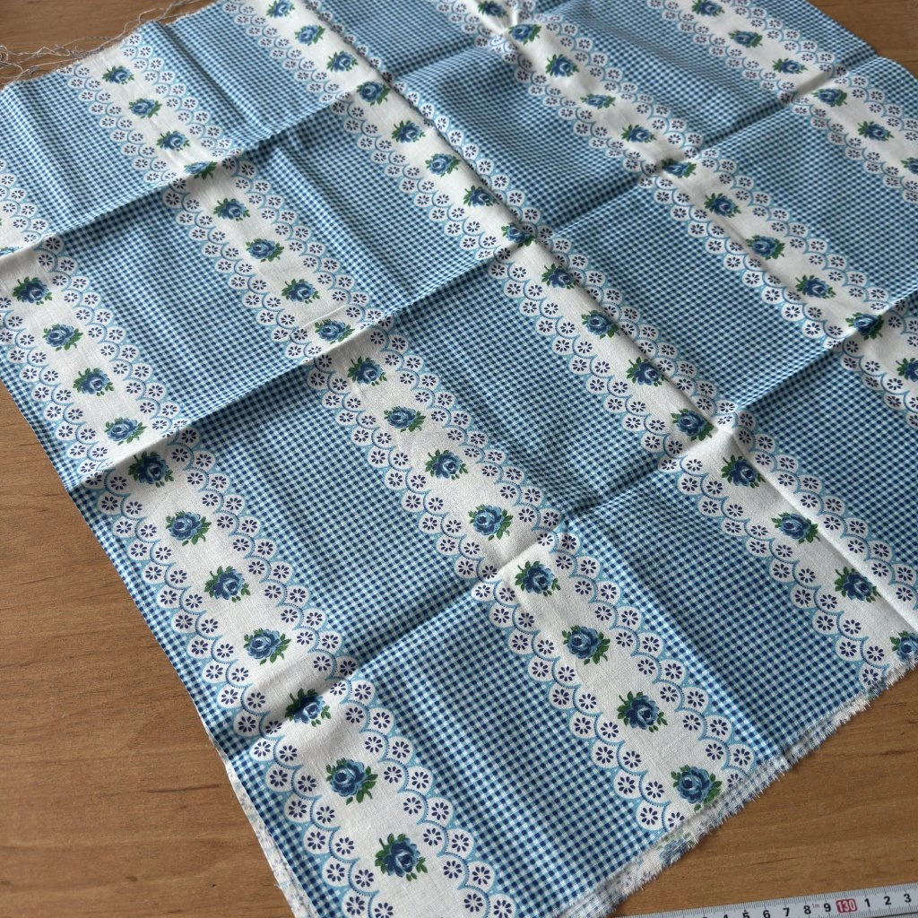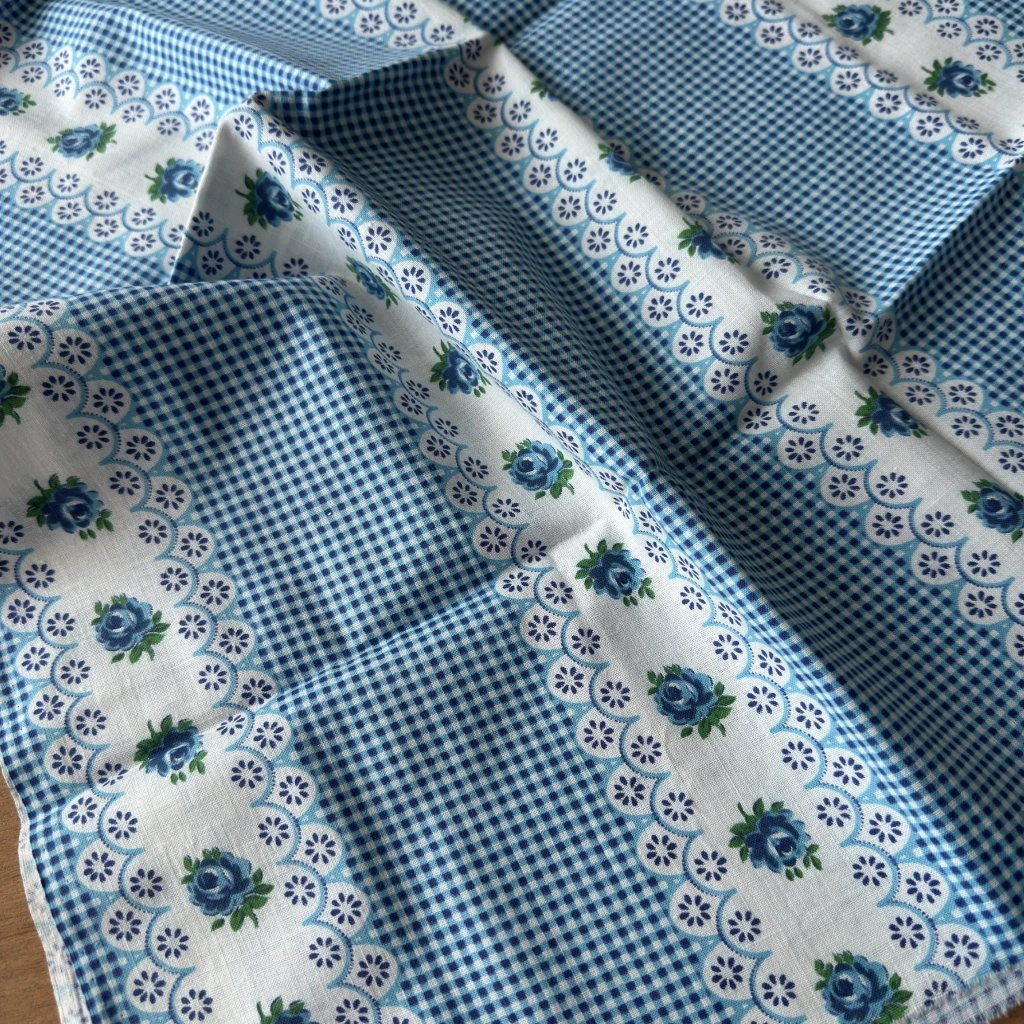 Plátno retro kostka / květy modrá, bavlna