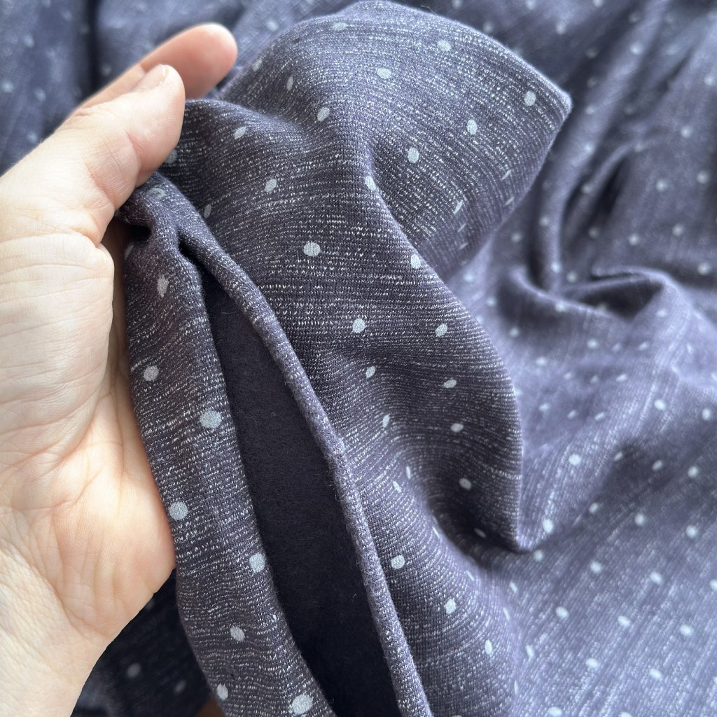 Pročesáný teplákový úplet puntík na žíhané šedé