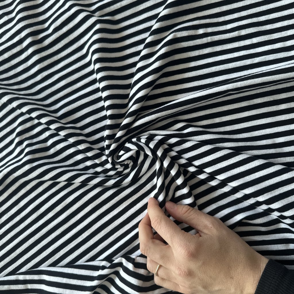 Někdy je příběh materiálů jednoduchý: Nevyužitá metráž od paní z Českého Brodu, která se šitím na zakázku živila, ale rozhodla se již nepokračovat a materiály nám odprodala k dalšímu využití.