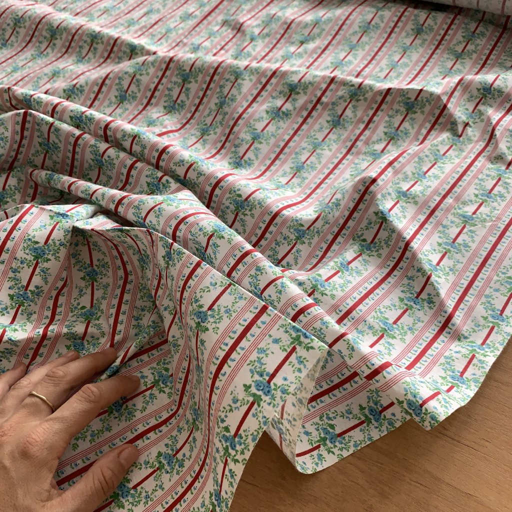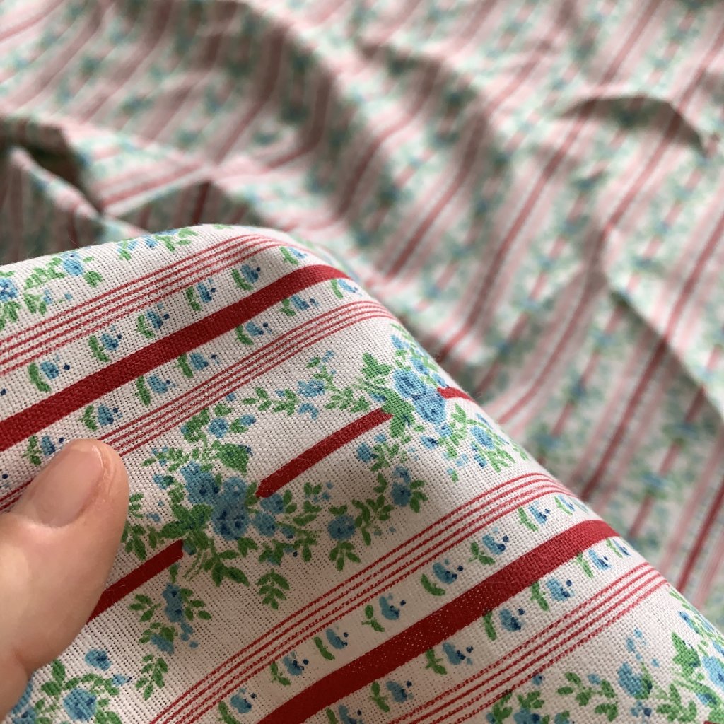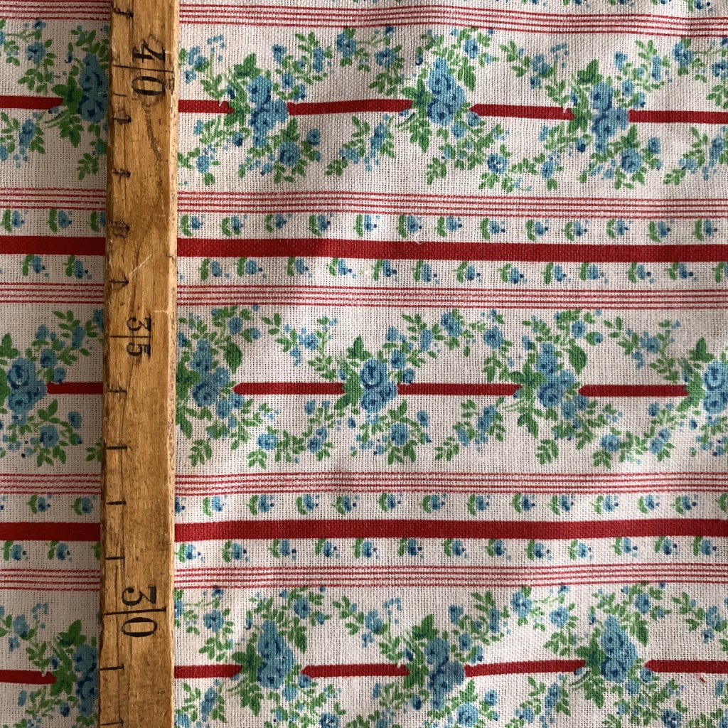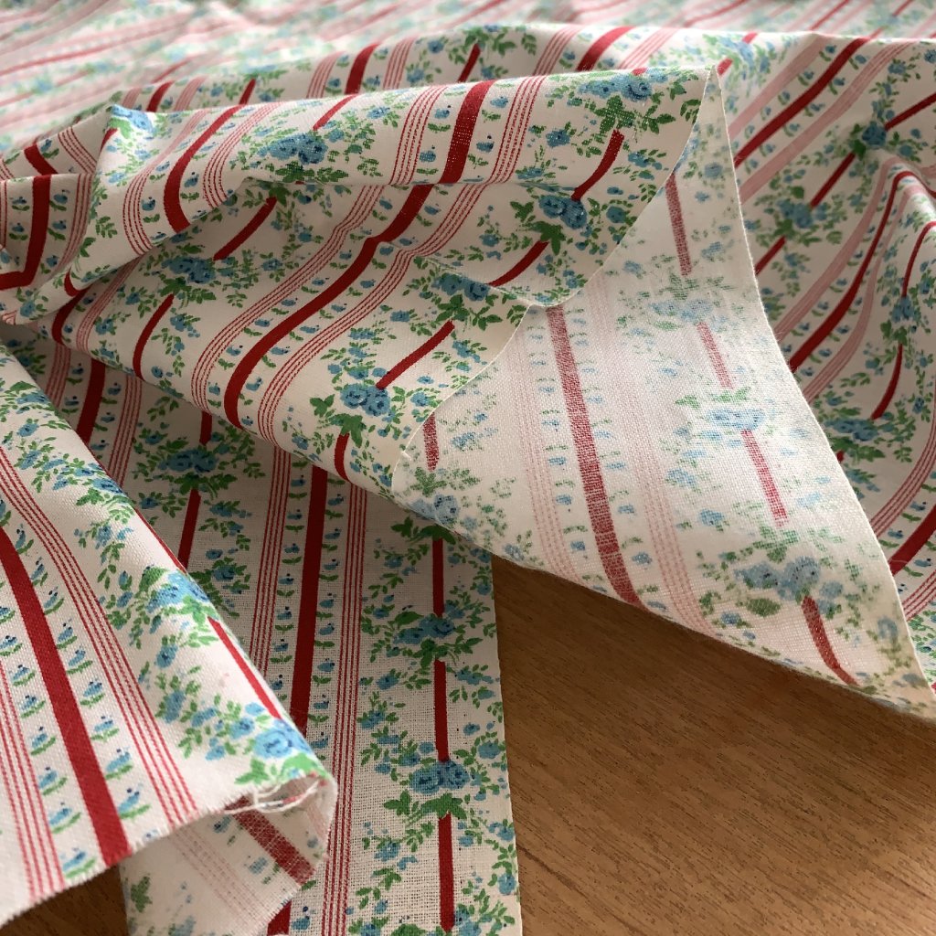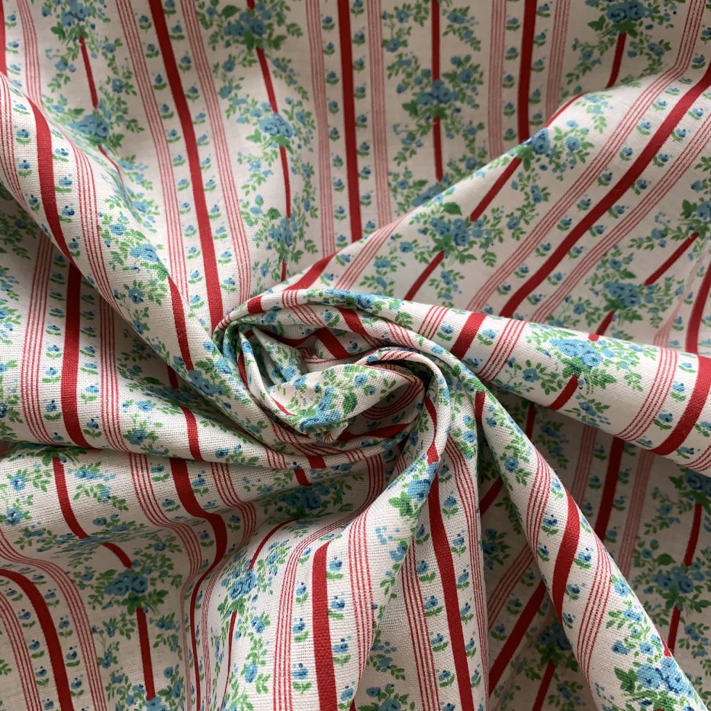 Retro bavlněné dekorační/bytové plátno, proužky a modré růže