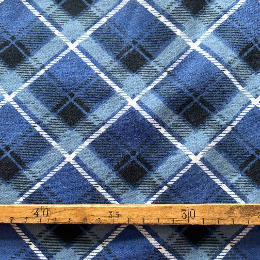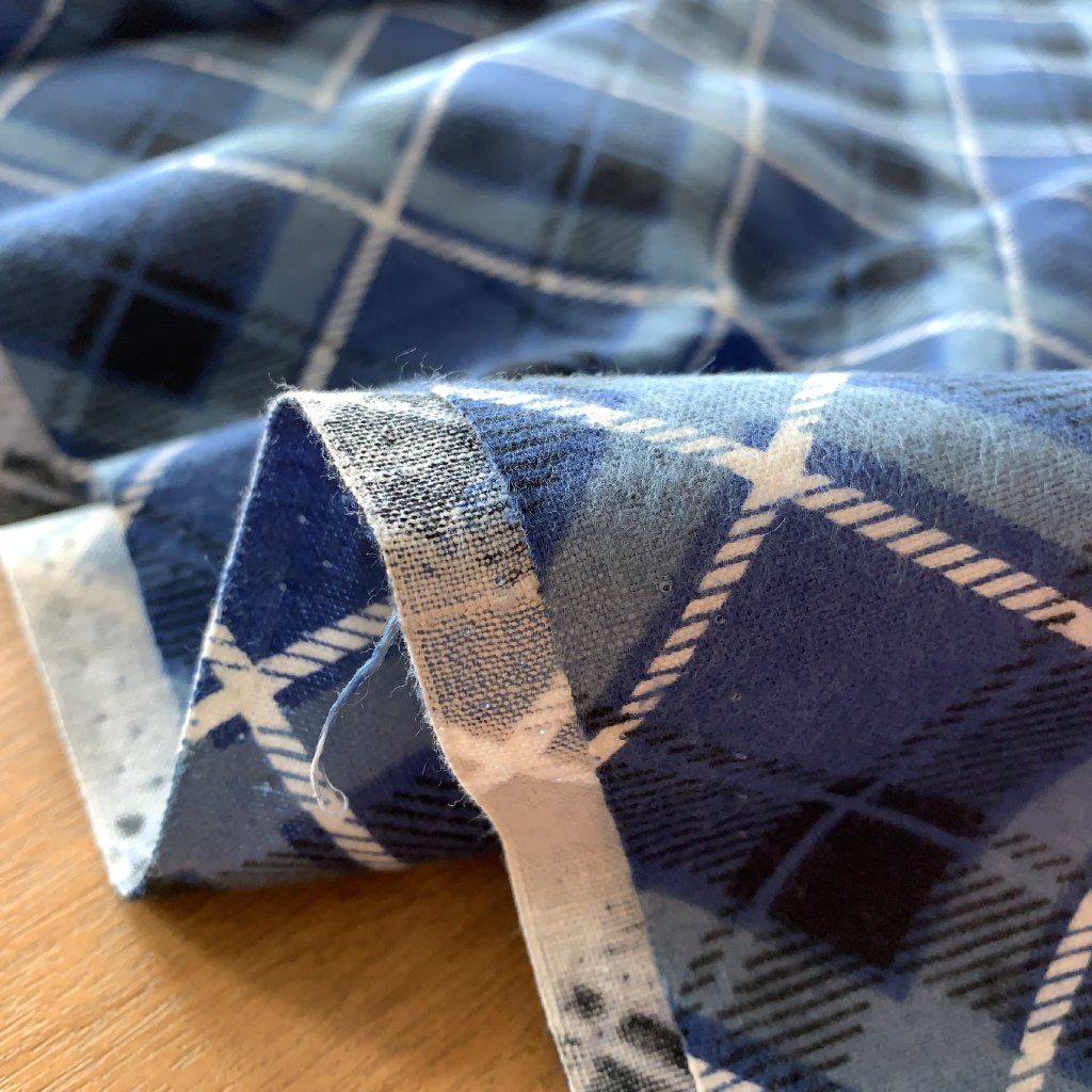 Retro bavlněný flanel modré káro