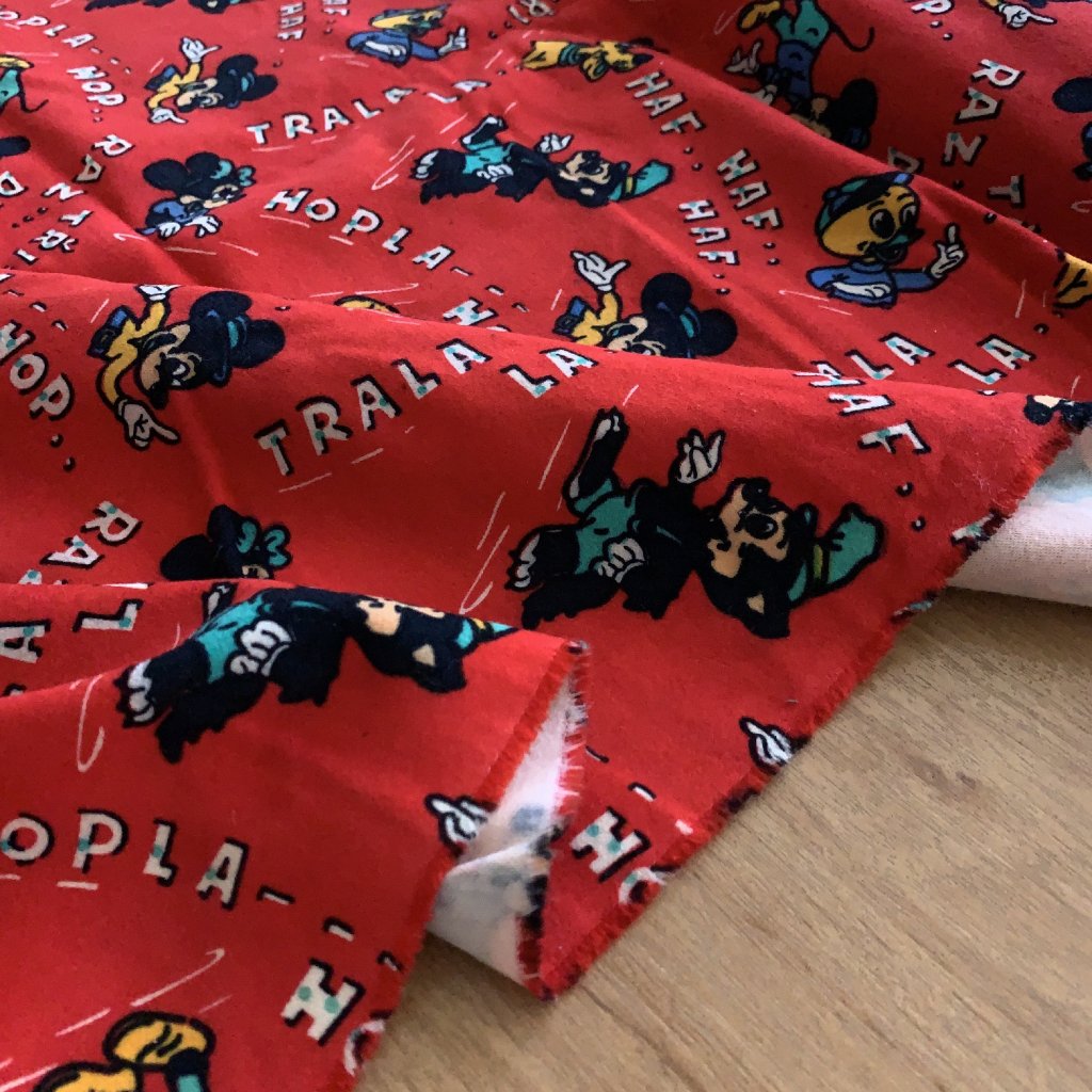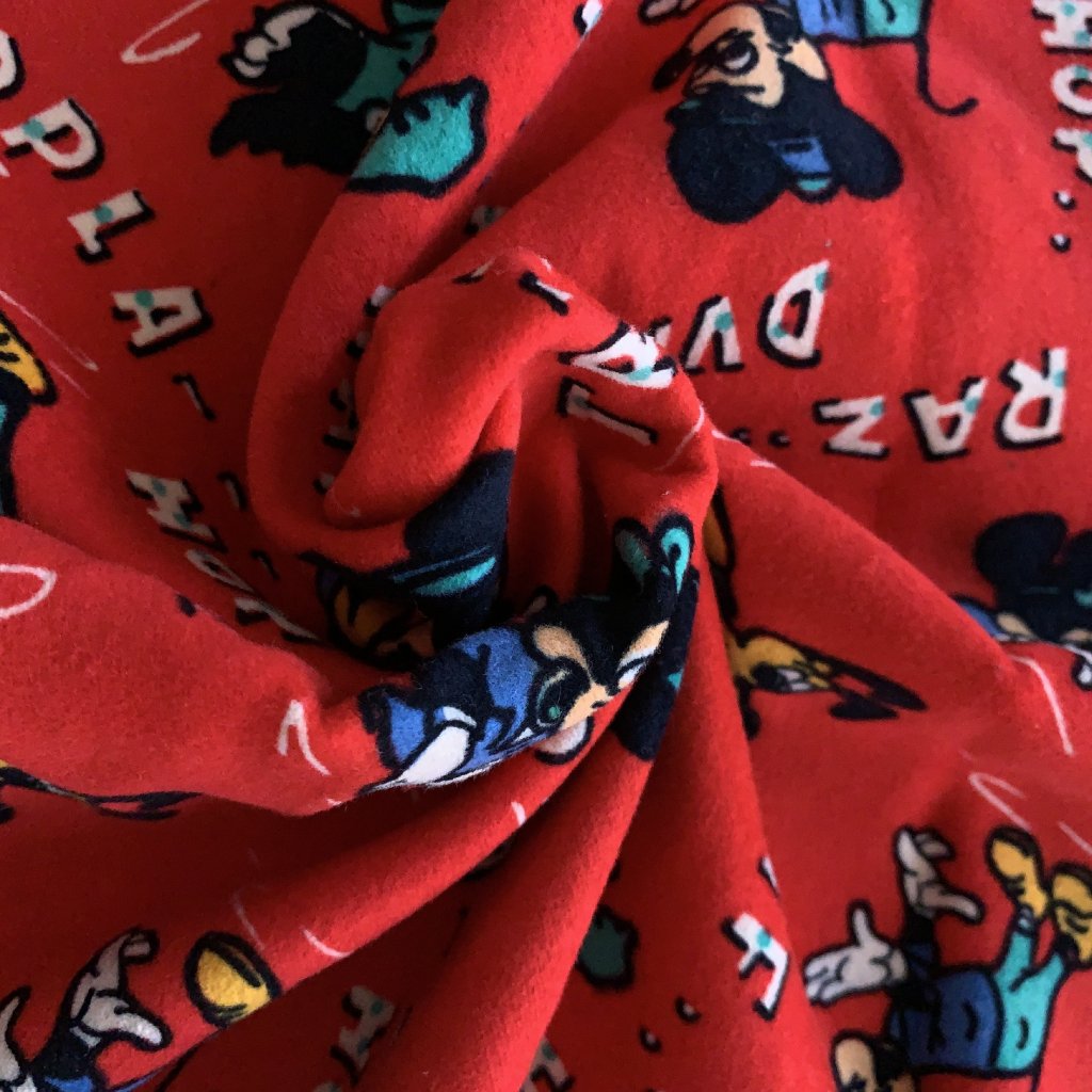 Retro bavlněný samet/ flanel Mickey mouse ma červené