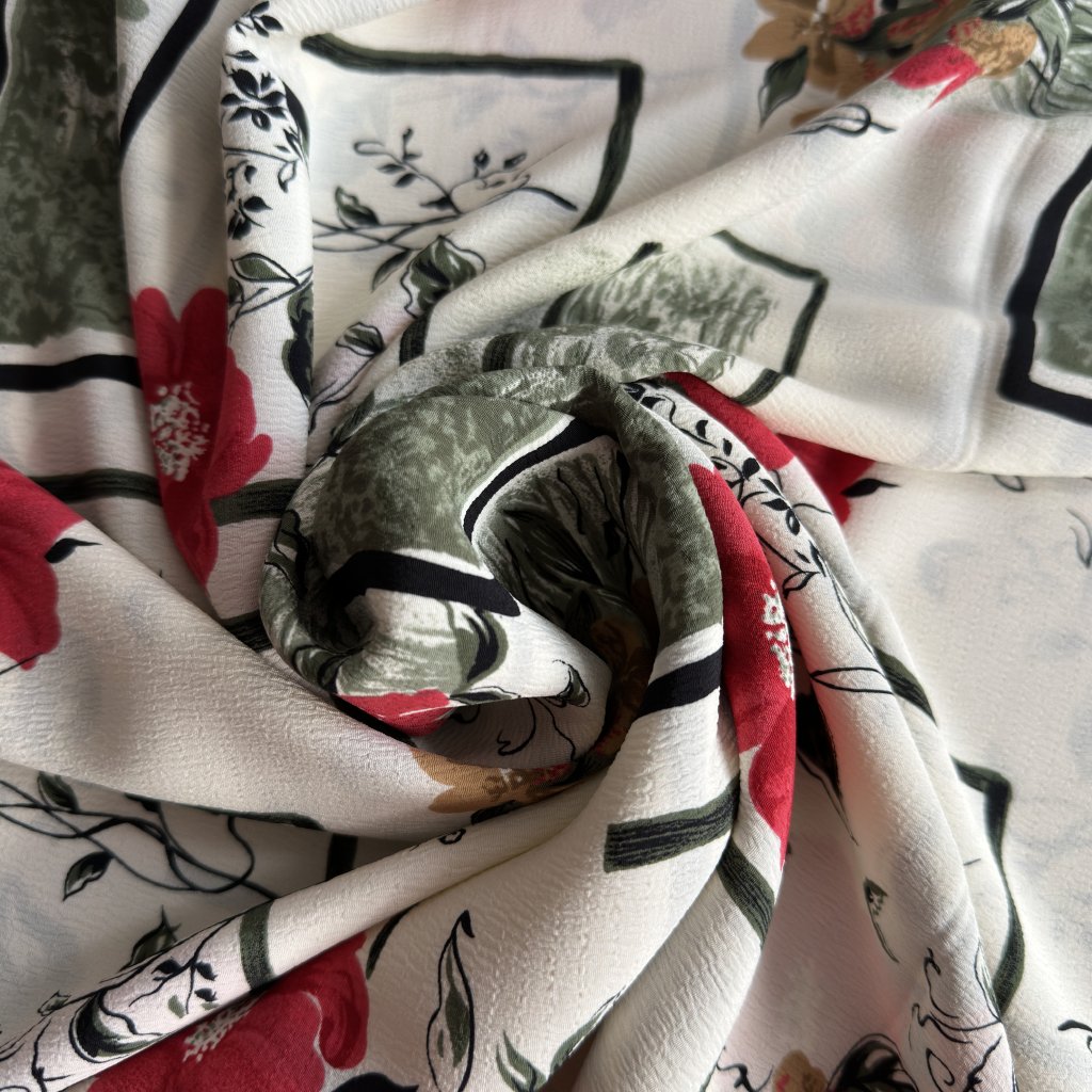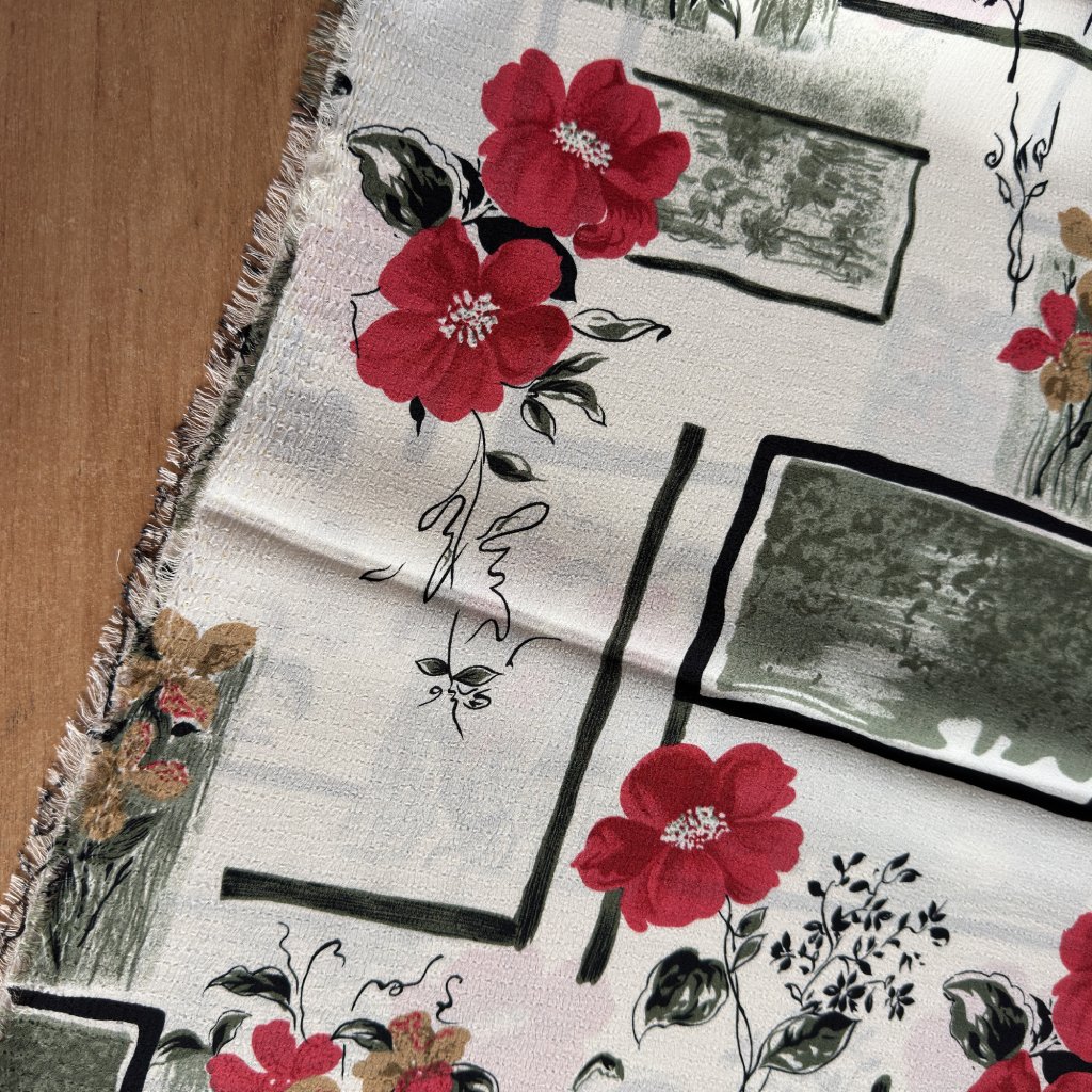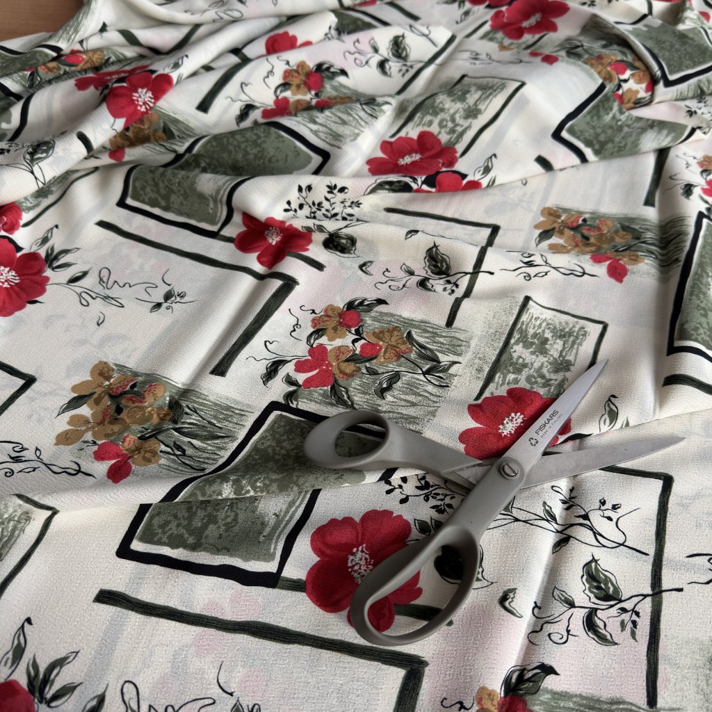 Retro krep šifon červené květy