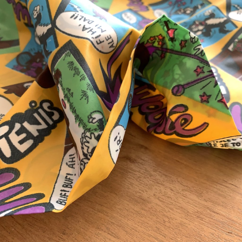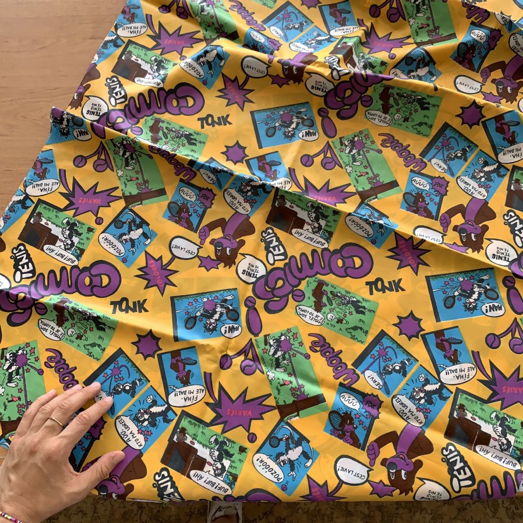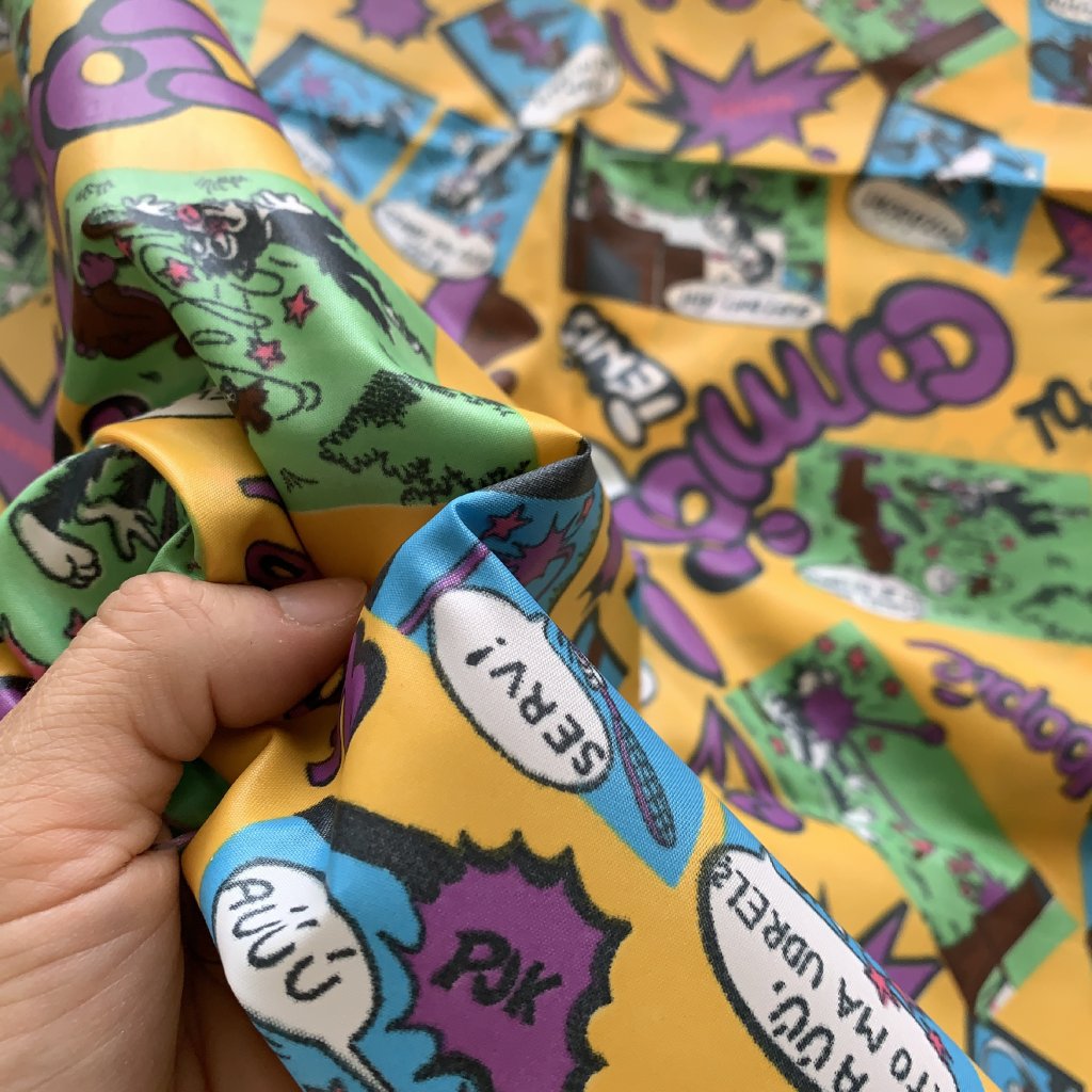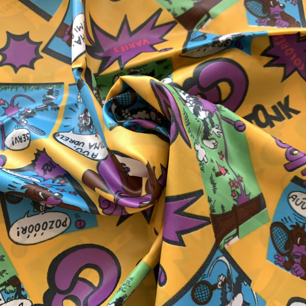 Retro šusťák/ podšívkovina s komiksovým vzorem