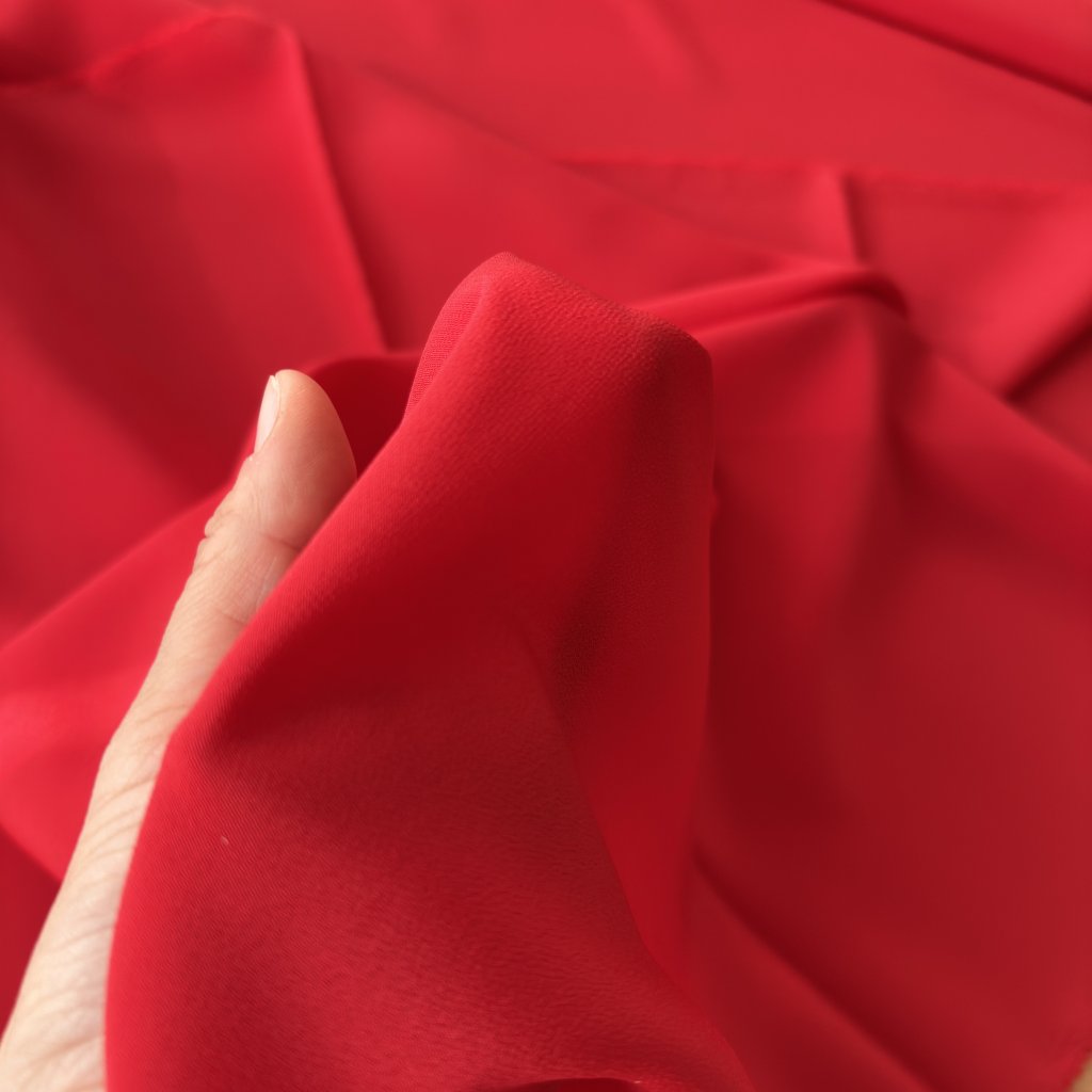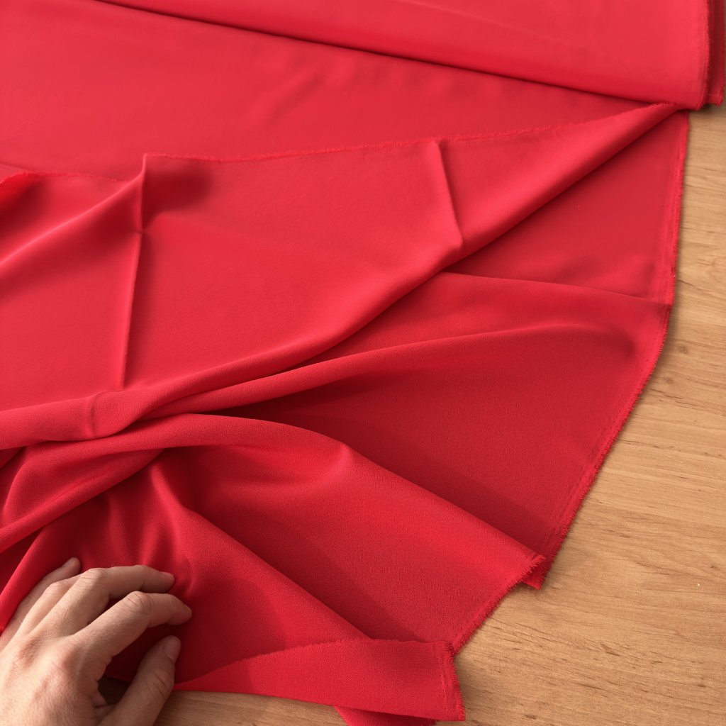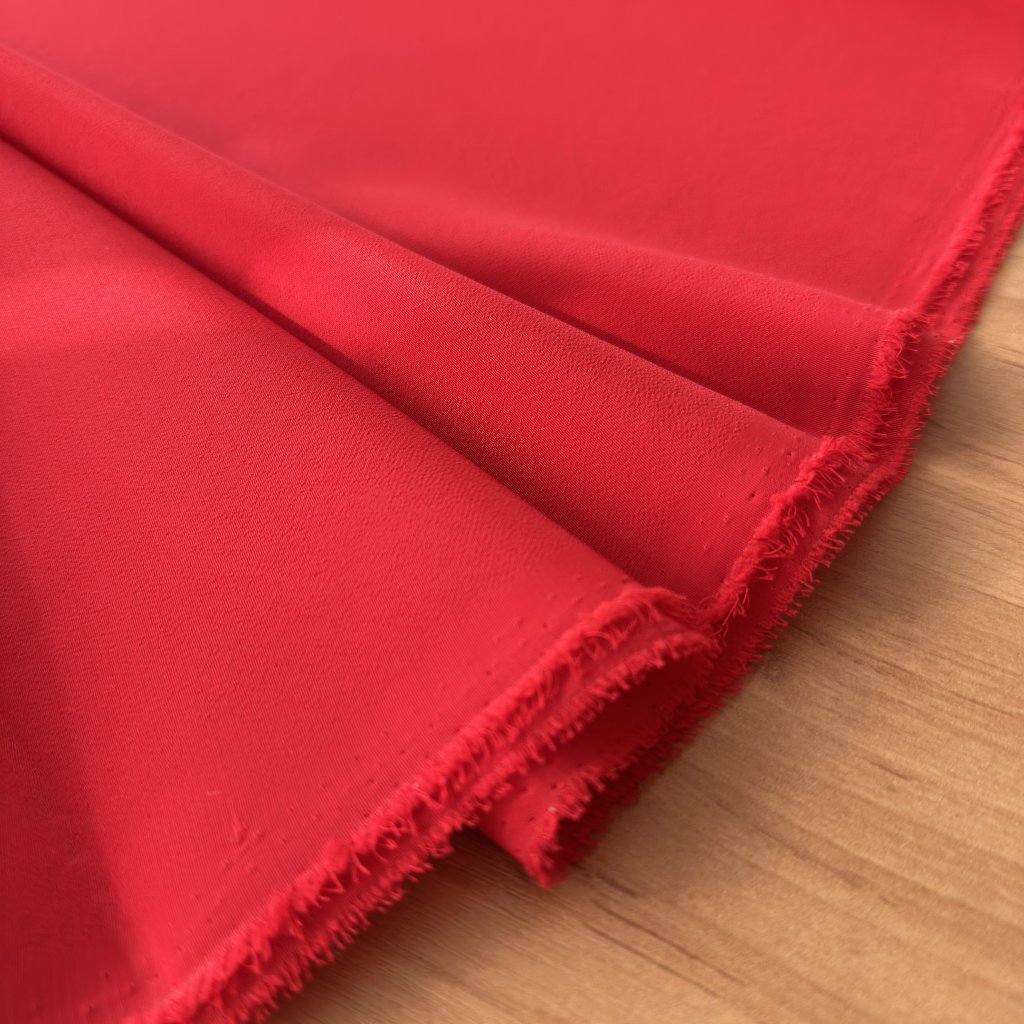 Rudá polyesterová šatovka s krepovou texturou