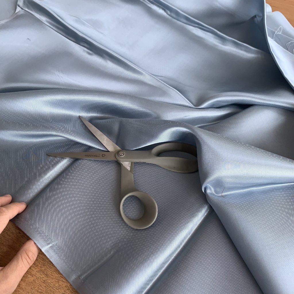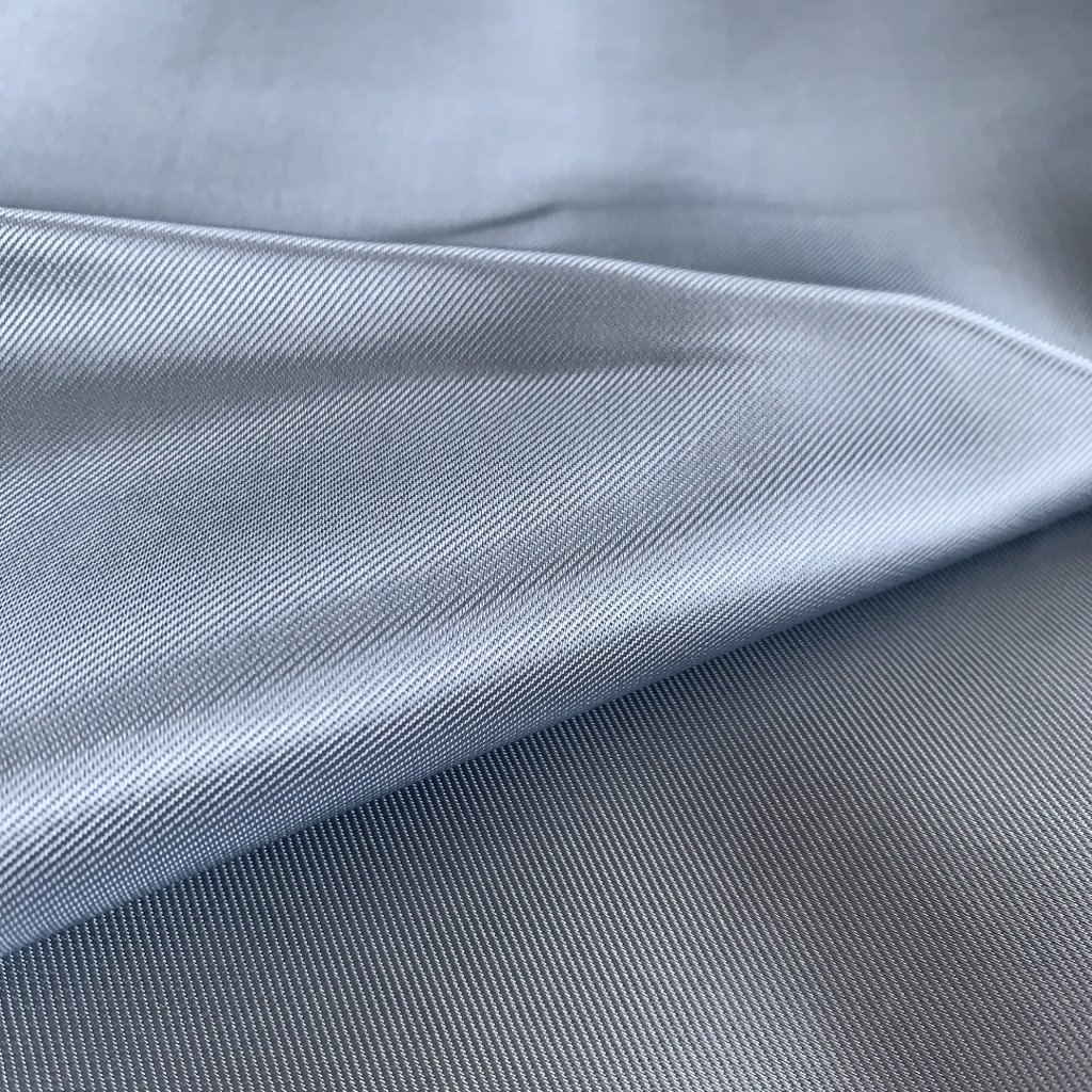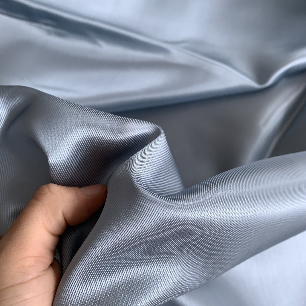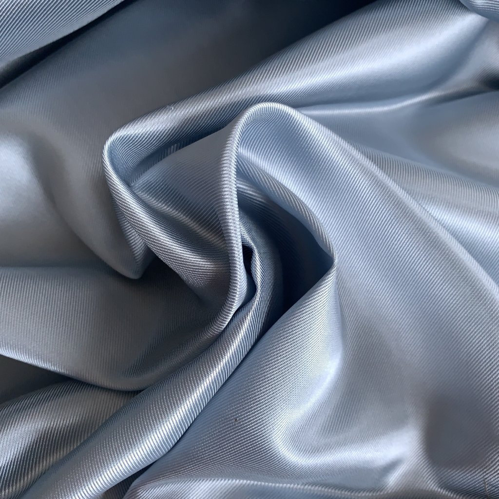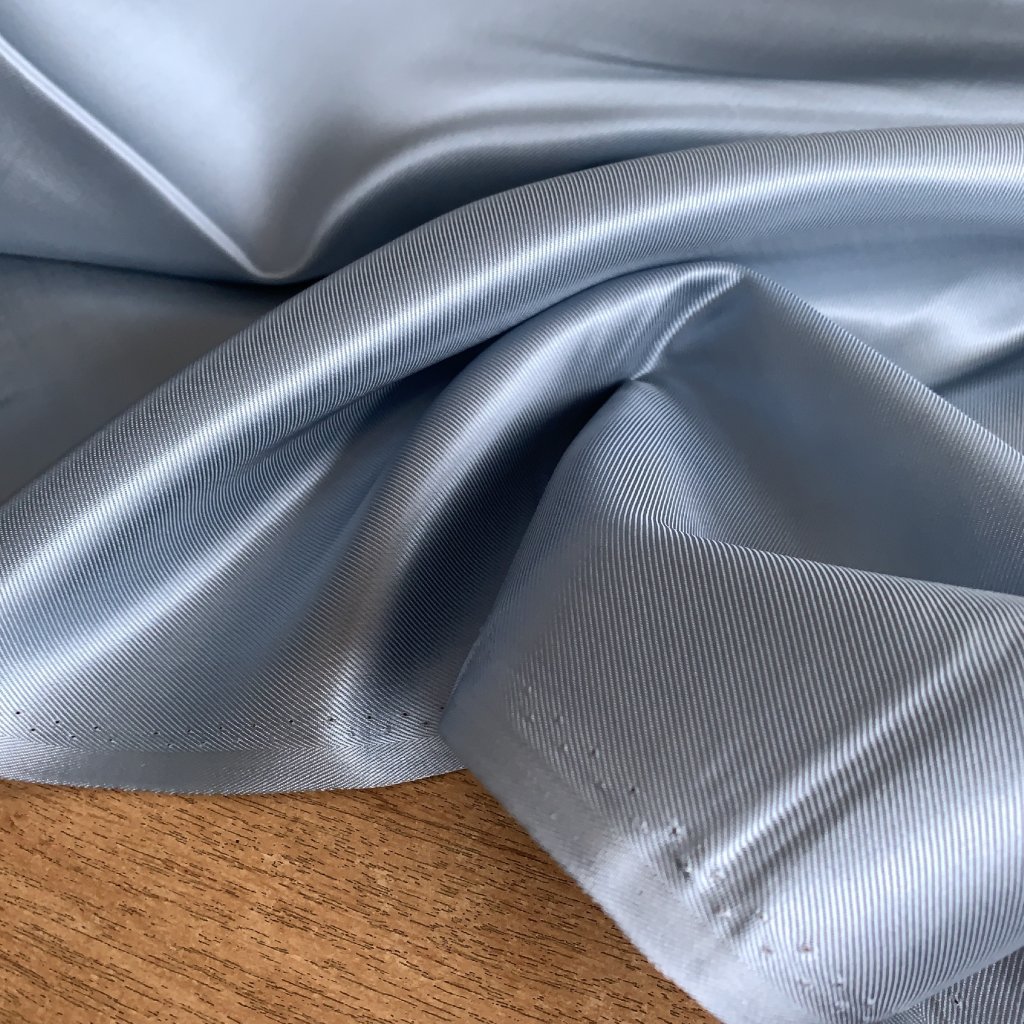 Saténová viskózová podšívkovina v keprové vazbě bledě modrá lesklá