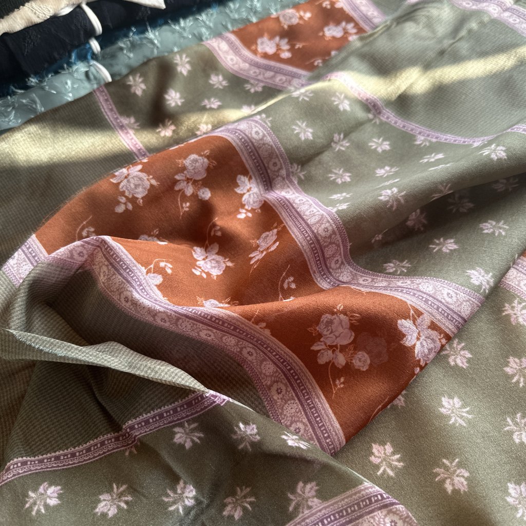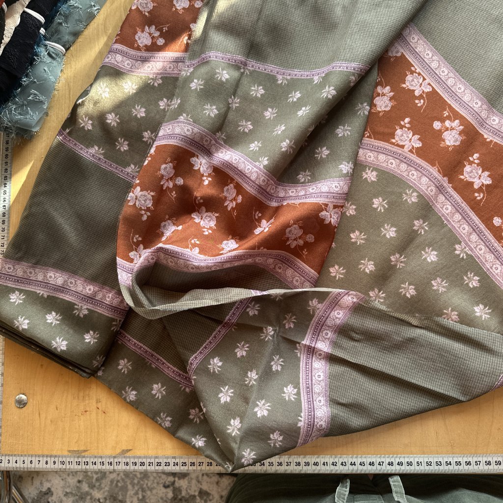 Od paní Niny jsme v minulosti jednu várku materiálů měli. Možná si pamatujete na (bohužel) pozůstalé materiály od paní Zorky Smetanové, české textilní výtvarnice. Příbuzná- paní Nina vyklízela byt, kde tyto materiály pozůstaly, odtud se známe. Protože paní Nina se sama obchodem s textilními materiály v minulosti živila, ozvala se nám, že má na chalupě i své vlastní přebytky z dob podnikání. A protože navíc bydlí kousek od nás, už nám nebránilo nic v předání. Toto jsou převážně italské, francouzské nebo španělské marteriály o kterých je řeč. Kvalita zaručena.