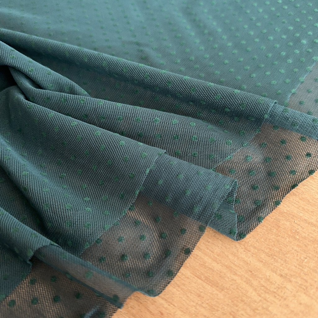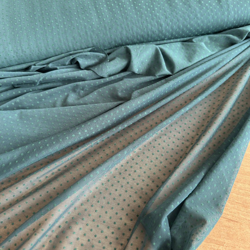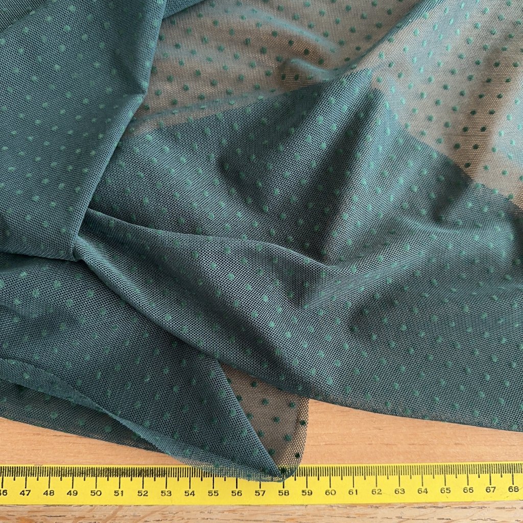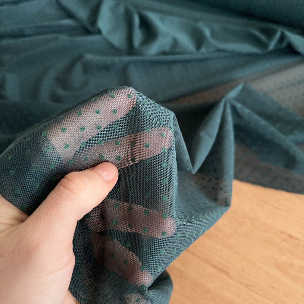 Síťovaný úplet, jedlově zelený s puntíky