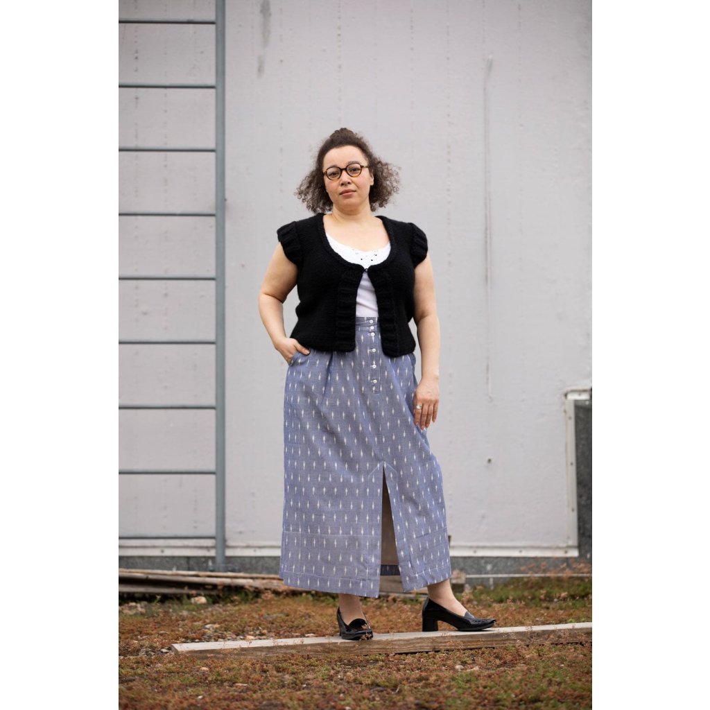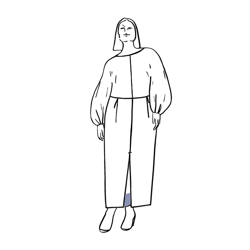Halenka: nejlépe funguje z měkkých tkanin, jako je dvojitá gázovina, ale dá se šít i z úpletů. Na podšívku rukávů lze použít stejný nebo lehčí materiál. Pro více struktury zkuste bavlněný popelín.