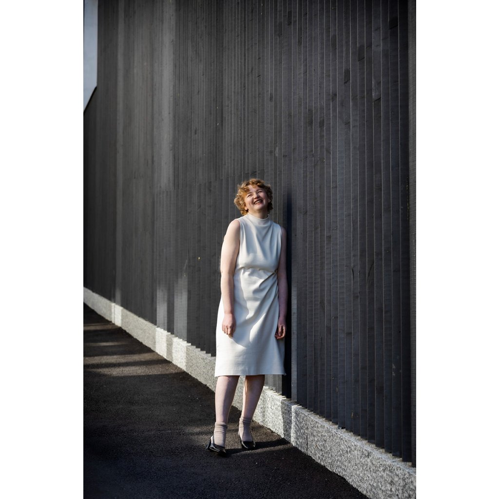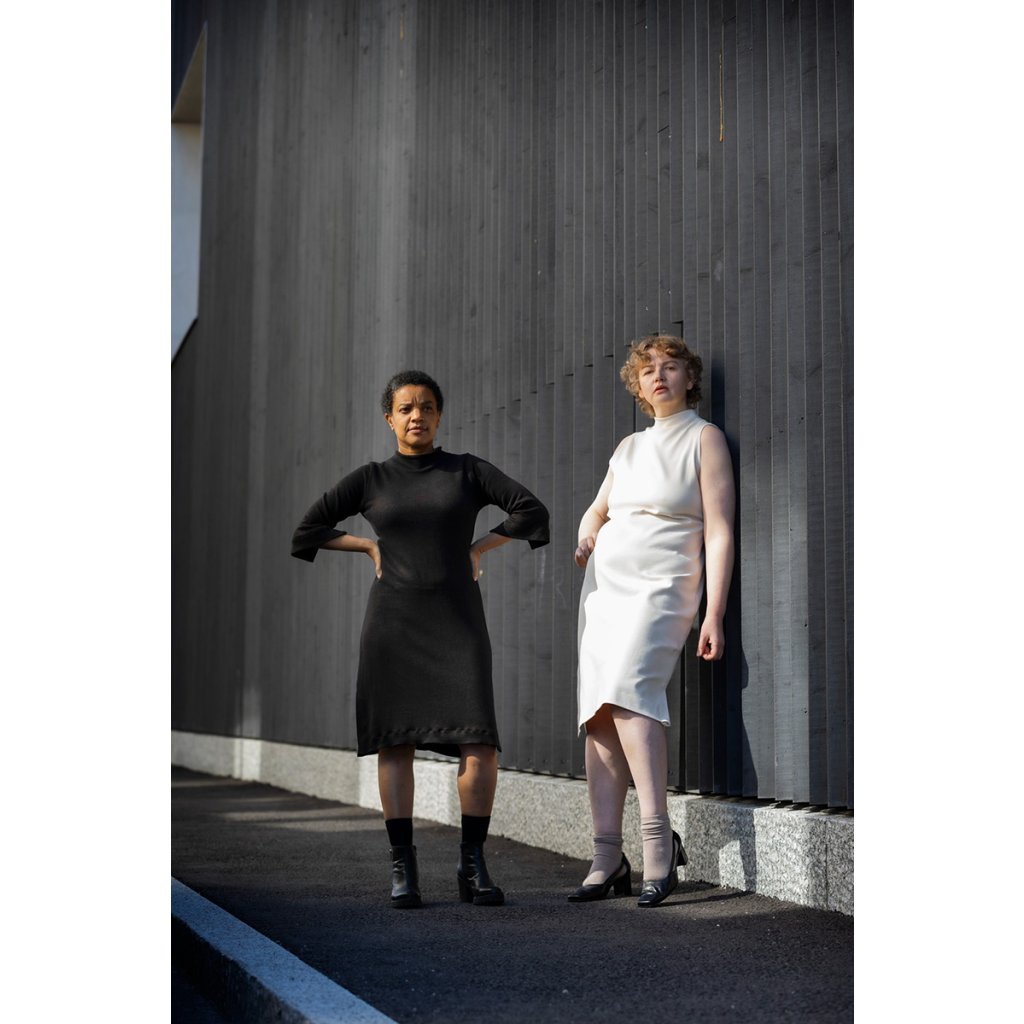Šaty HIUTALE jsou modelem, který se nosí jako precizně krejčovsky zpracovaný kousek. Jemně zvýšený výstřih u krku dodává modelu subtilní, ale výrazný charakter, zatímco středový zadní šev formuje siluetu. Skrytá konstrukce zajišťuje dokonale čistý vzhled zvenčí. Minimalistická linie ke kolenům je zakončena nenápadnými rozparky na rukávech pro nádech elegance. Pro zachování hladkého povrchu se doporučuje ručně šitý lem a absence viditelného prošití.