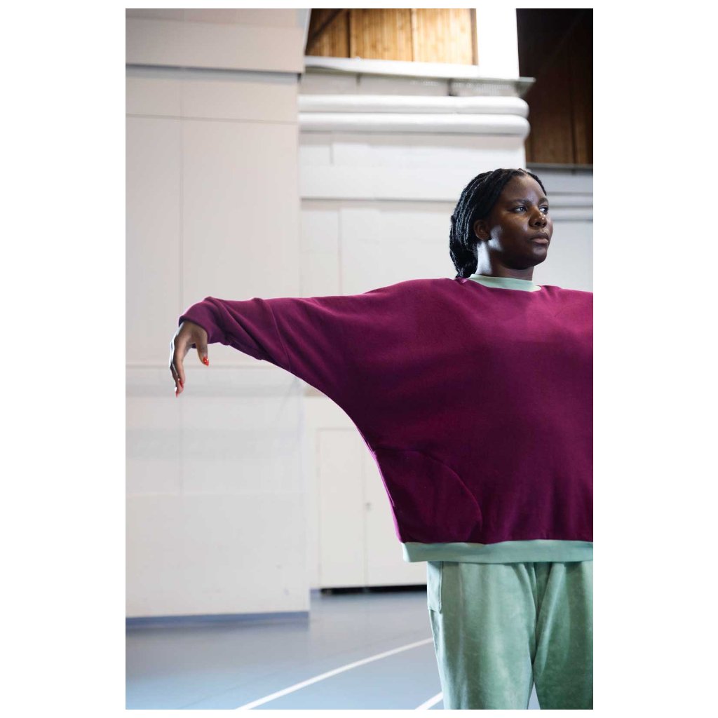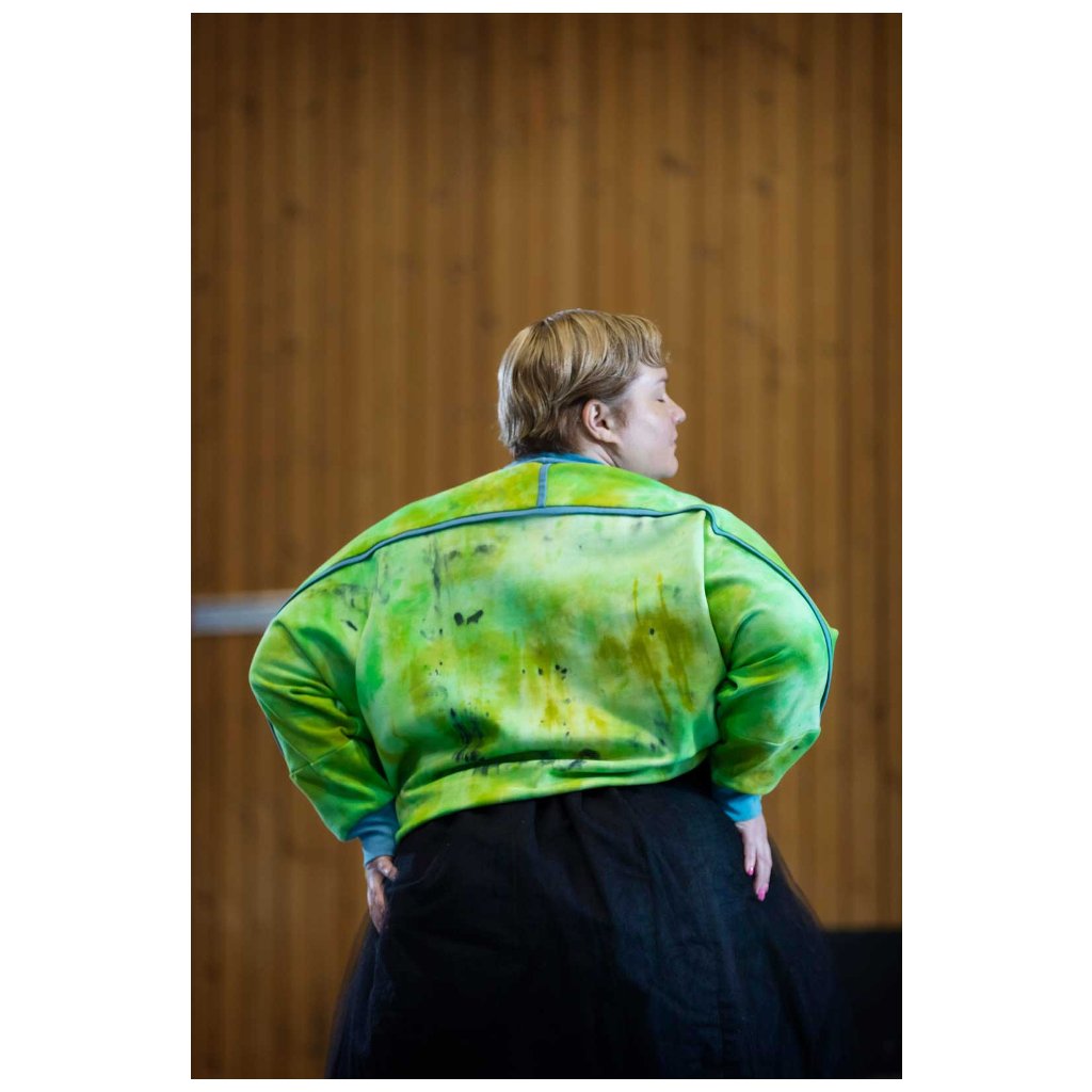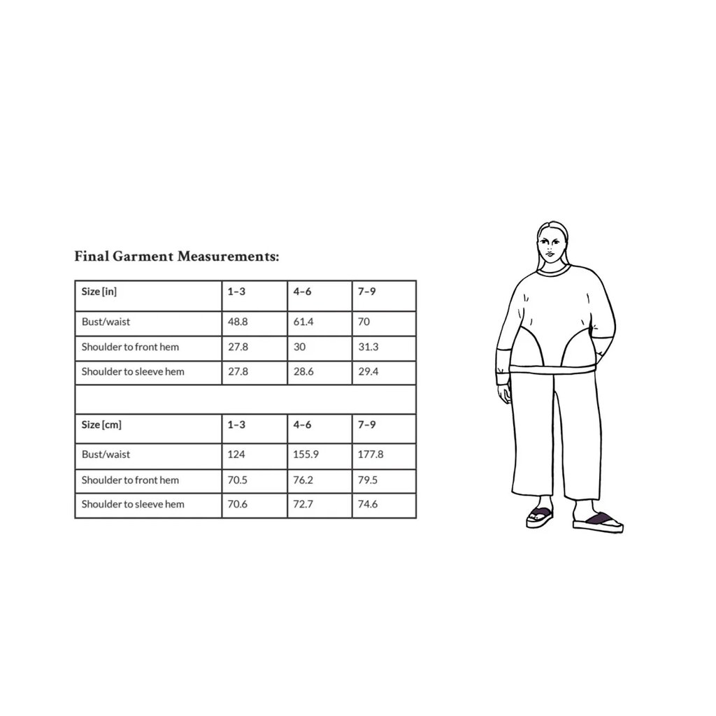 Zvolte střední až silné úplety pro sportovní a aktivní verze. Pro větší pohodlí a teplo použijte pletáž či plyšovou látku. Pro ležérní vzhled volte středně těžký len. Pro útulný pocit použijte dvojitou gázovinu a pro elegantní vzhled splývavé materiály, jako je hedvábí nebo Tencel. Zelený model je ušit z 100 % bavlny, 330 g/m² a fialový model je z 100 % bavlny, 290 g/m². Lem výstřihu a páska jsou ušity z 1x1 žebrovaného bavlněného nápletu.