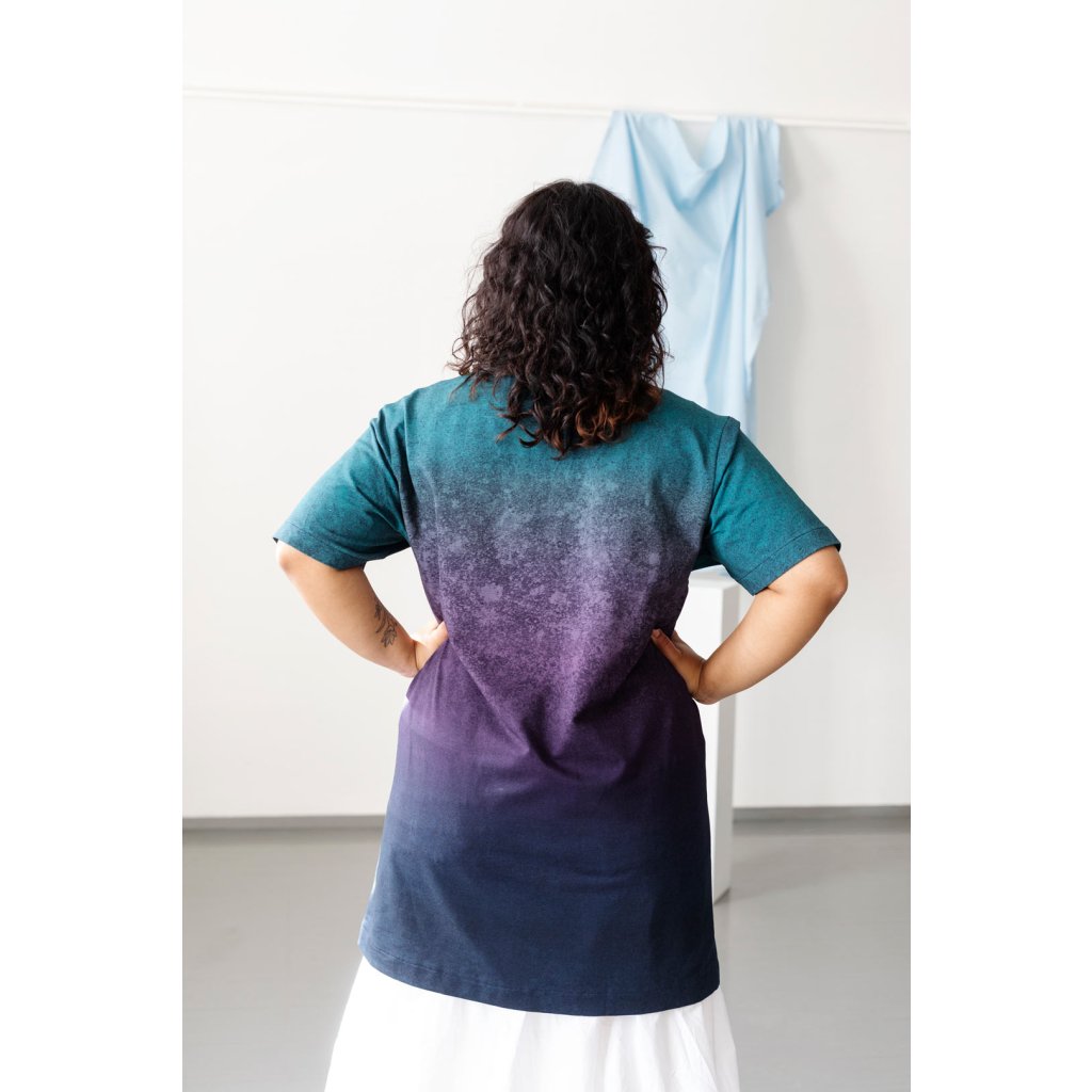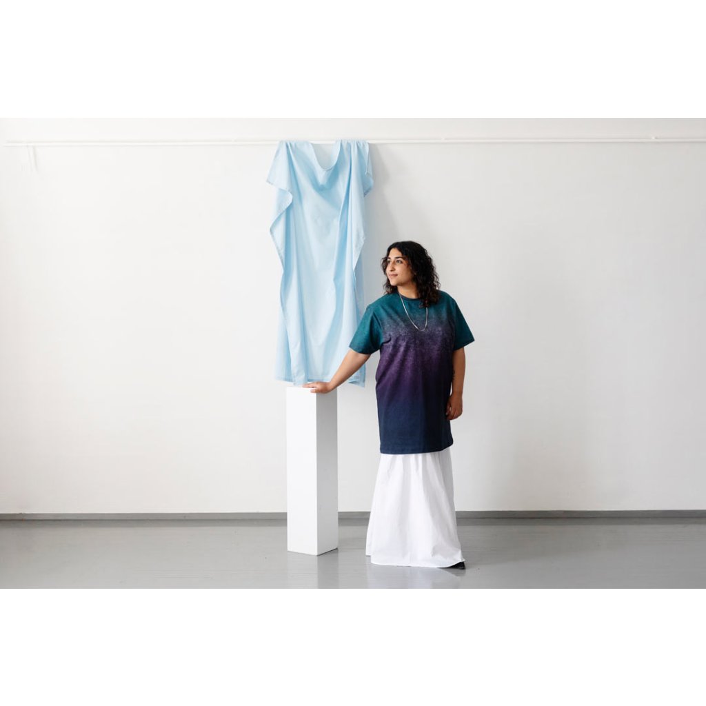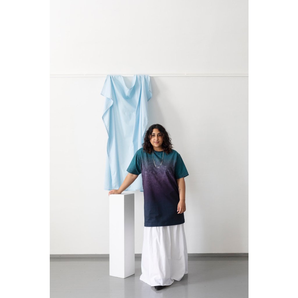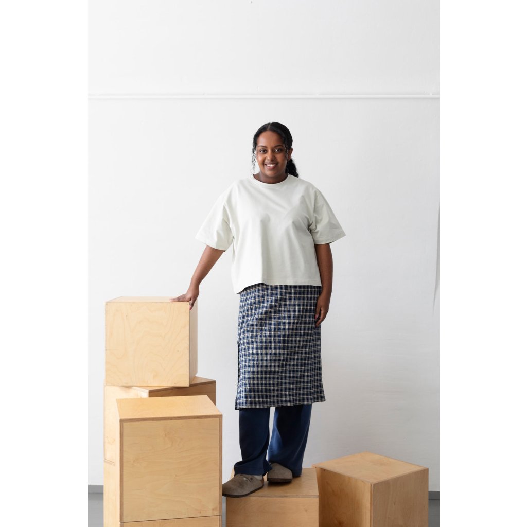 Zvolte středně těžké úplety a elastické látky, například jersey, svetroviny, vlněné úplety nebo Tencel úplety. Ukázkový top je ušit z 95 % organické bavlny, 5 % elastanu, 210 g/m² v barvě krémové a tunika z 95 % organické bavlny, 5 % elastanu, 210 g/m². Šaty jsou ze 100 % merino vlny bez mulesingu, 250 g/m².