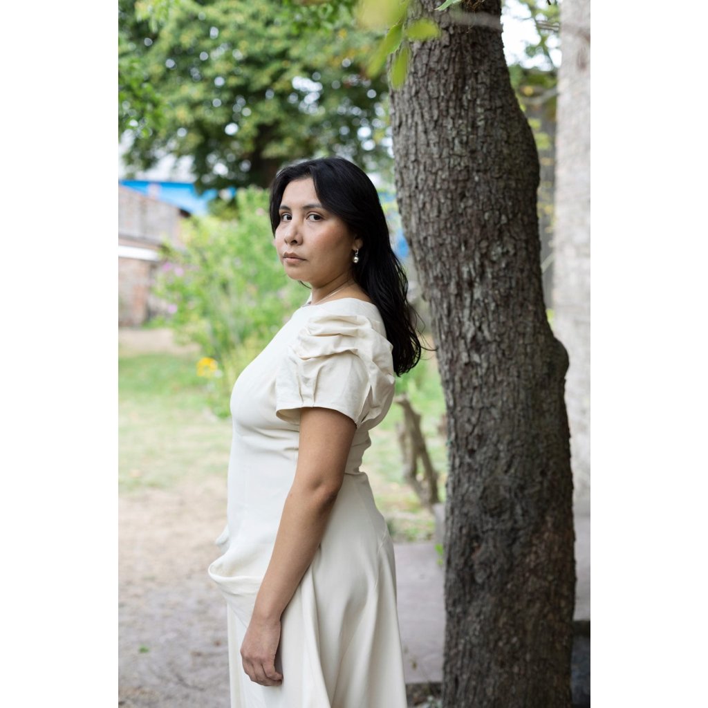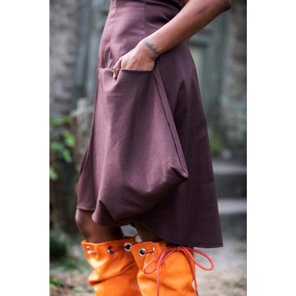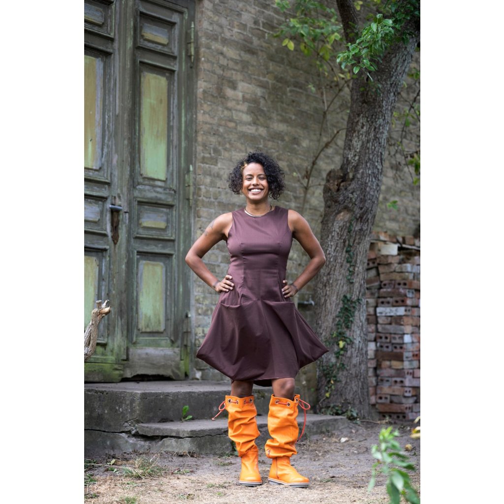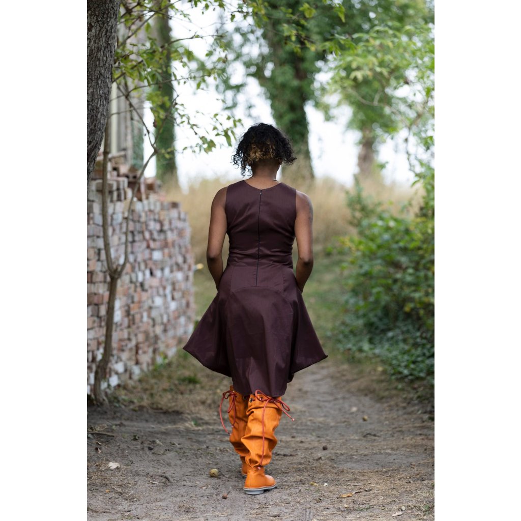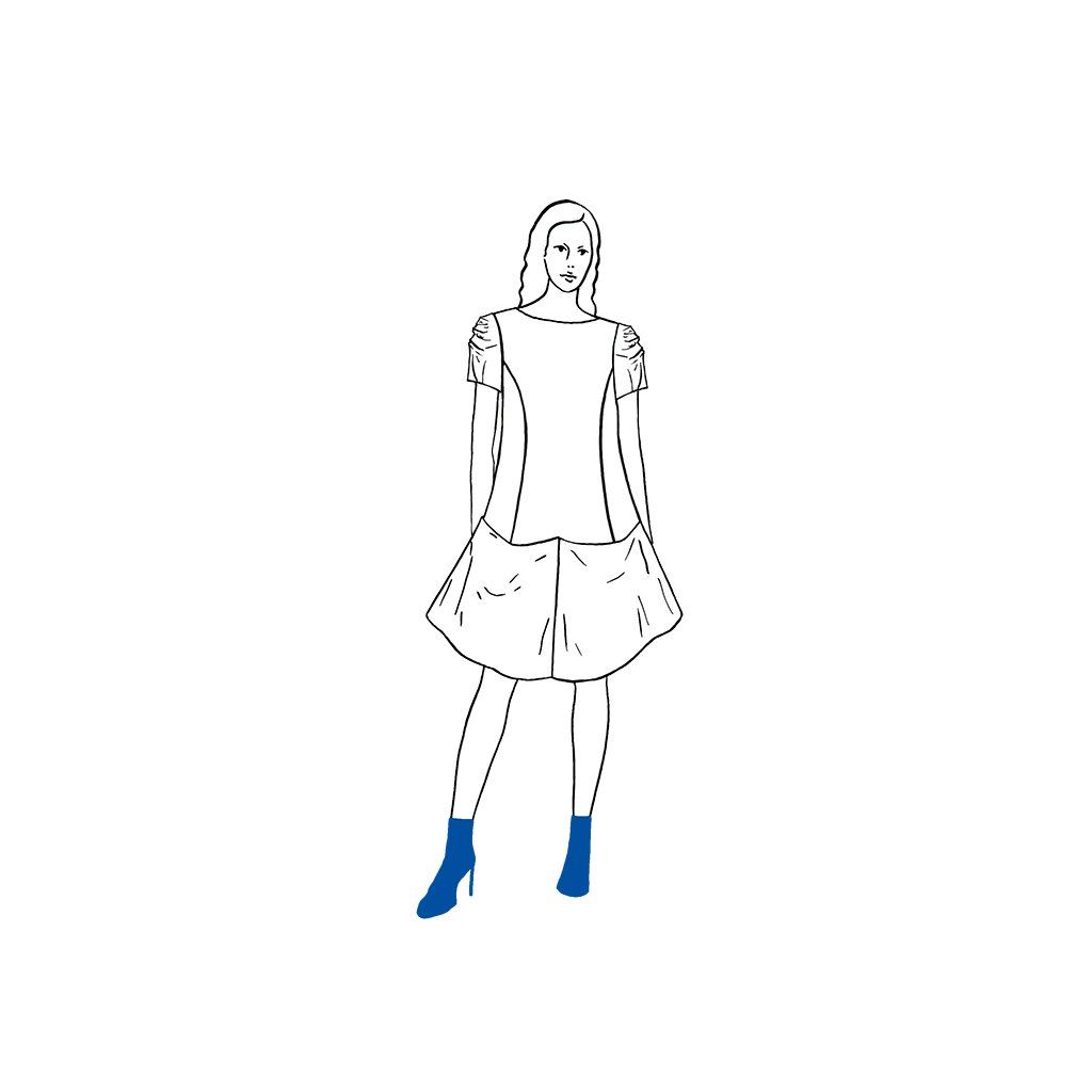 Šaty PICNIC nejlépe vyniknou ze středně silných tkanin. Bavlněné materiály s lehkou tuhostí, jako je popelín, krásně drží sochařskou siluetu.