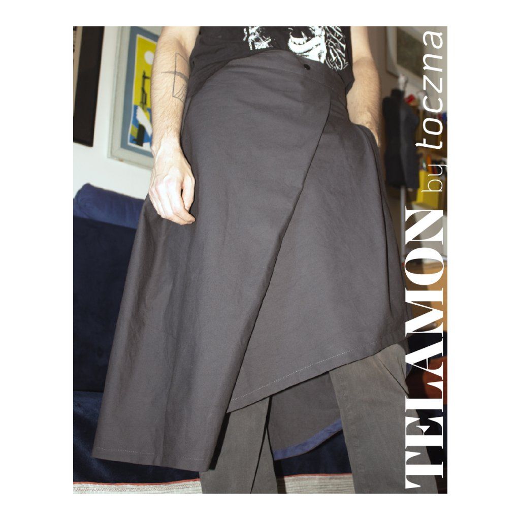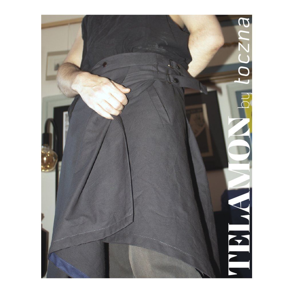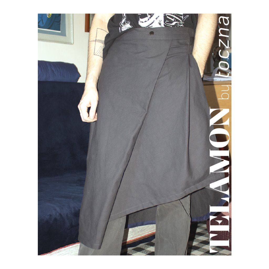 Autorka o Telamon píše: „Motivací pro tvorbu tohoto střihu byla prosba mého přítele, abych mu ušila sukni na míru. Nakonec jsem se rozhodla místo jednoho custom kousku připravit střih s podrobným návodem, podle kterého by si ji mohl ušít sám. Na fotce je můj přítel (aka nejlepší partner pod sluncem) v sukni, kterou si vlastnoručně ušil! A já jsem mega pyšná na to, jak strašně hezky se mu to povedlo.”